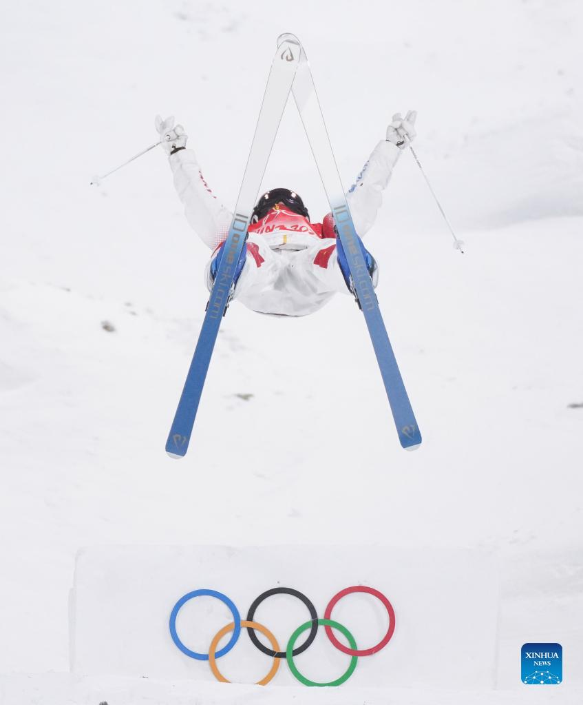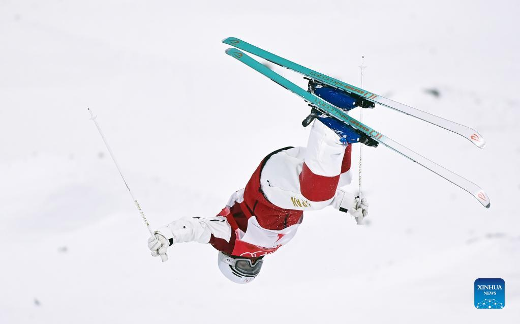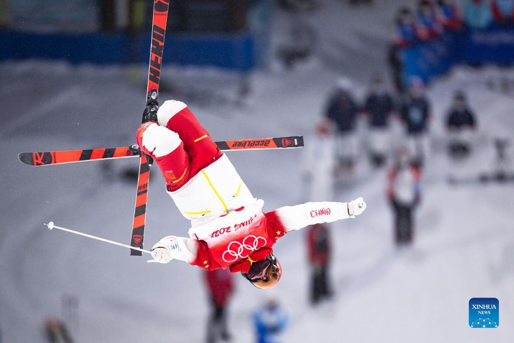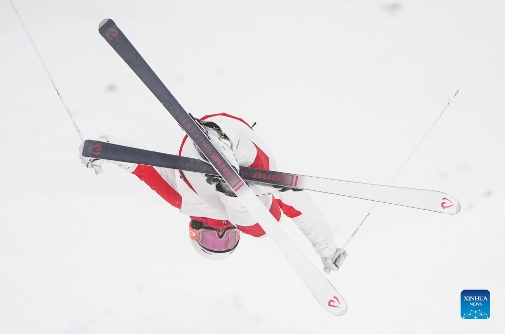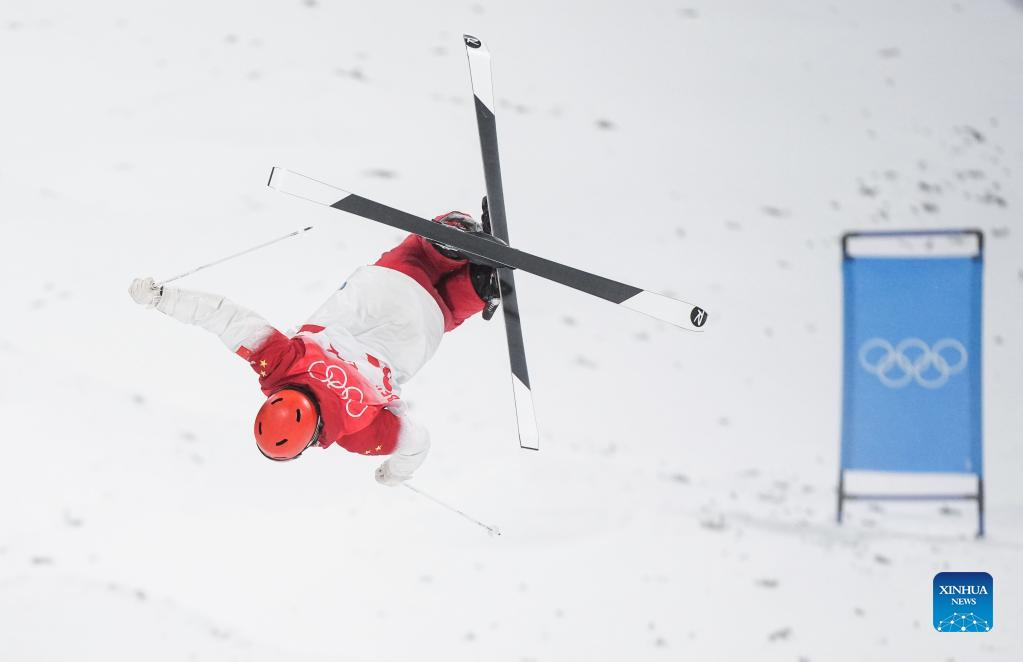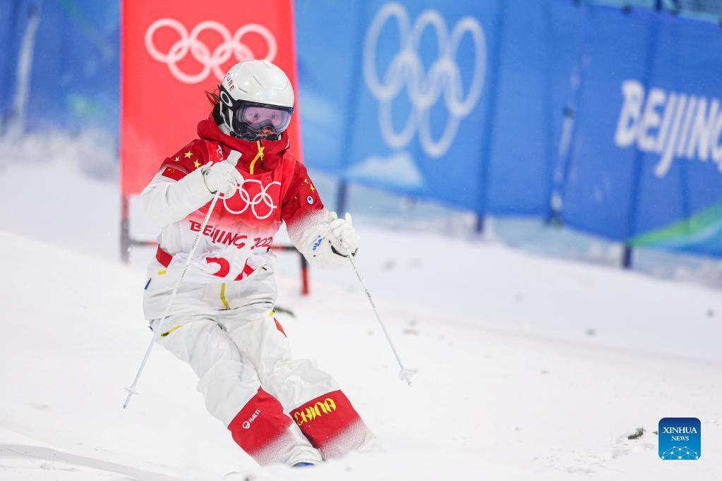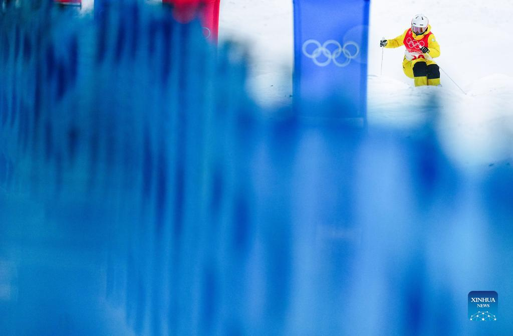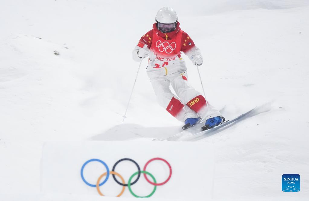 Li Nan of China competes in the freestyle skiing women's moguls qualification during the Beijing 2022 Winter Olympic Games at the Genting Snow Park in Zhangjiakou, north China's Hebei Province, Feb.3, 2022. (Xinhua/Hu Huhu)