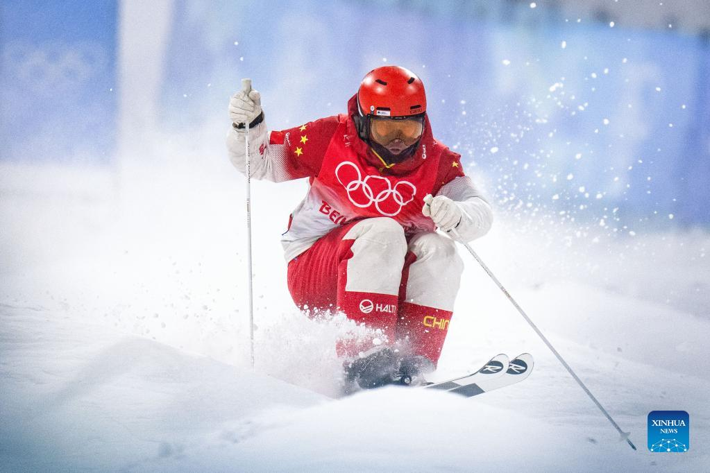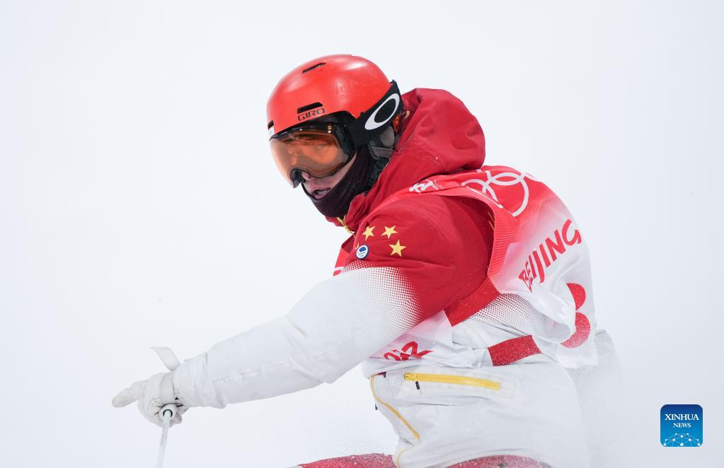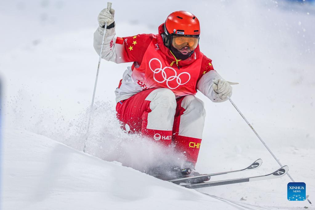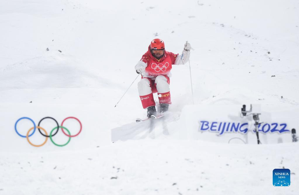 China's Zhao Yang competes in the men's moguls qualification during the Beijing 2022 Winter Olympic Games at the Genting Snow Park in Zhangjiakou, north China's Hebei Province, Feb. 3, 2022. (Xinhua/Xiao Yijiu)