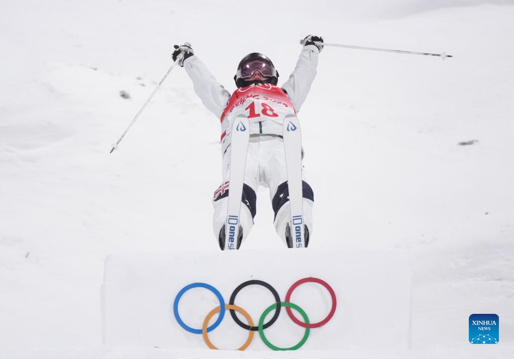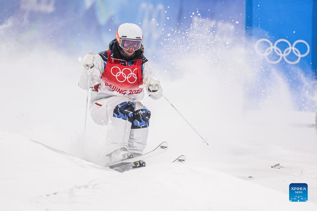 Leonie Gerken Schofield of Great Britain competes in the freestyle skiing women's moguls qualification during the Beijing 2022 Winter Olympic Games at the Genting Snow Park in Zhangjiakou, north China's Hebei Province, Feb.3, 2022. (Xinhua/Hu Huhu)