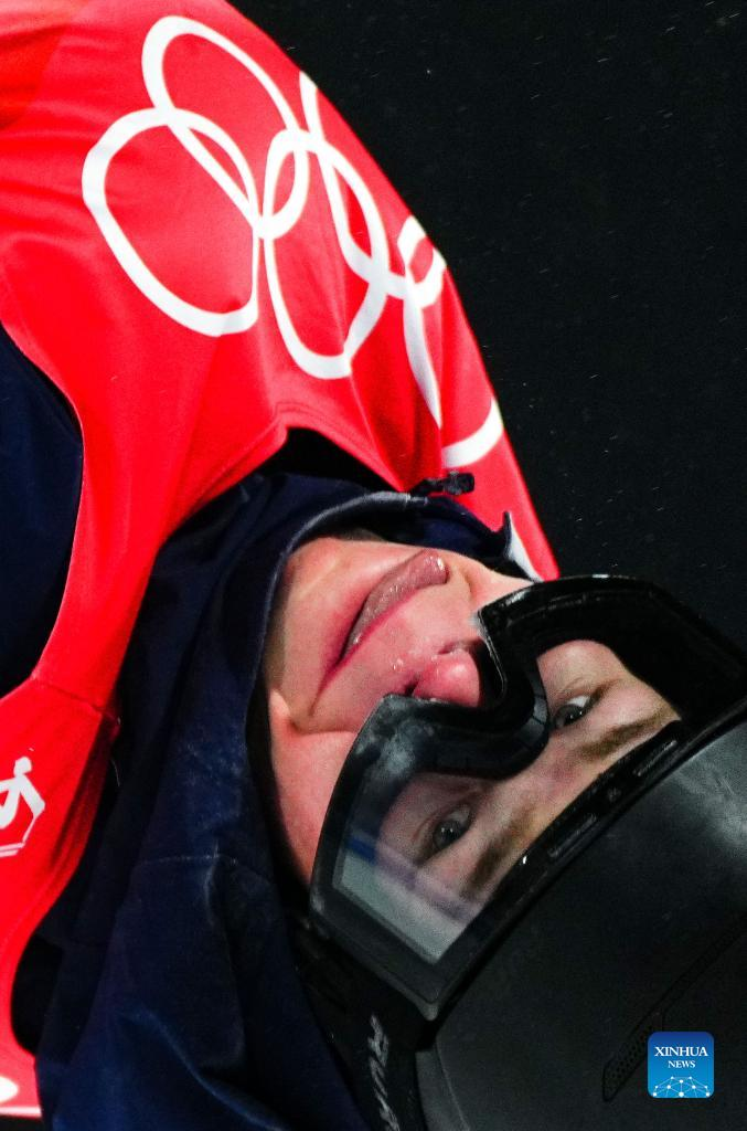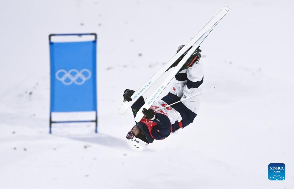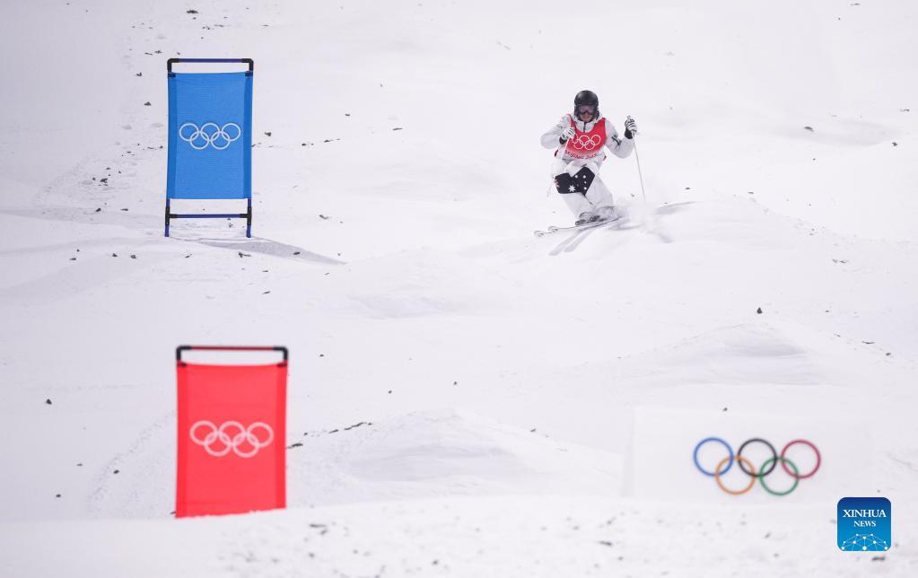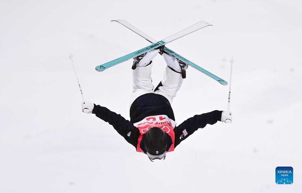 Makayla Gerken Schofield of Great Britain competes in the freestyle skiing women's moguls qualification during the Beijing 2022 Winter Olympic Games at the Genting Snow Park in Zhangjiakou, north China's Hebei Province, Feb.3, 2022. (Xinhua/Hu Huhu)
