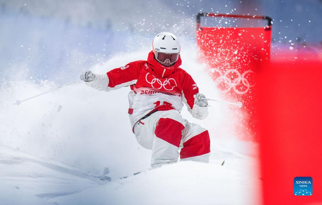 Canada's Laurent Dumais competes in the men's moguls qualification during the Beijing 2022 Winter Olympic Games at the Genting Snow Park in Zhangjiakou, north China's Hebei Province, Feb. 3, 2022. (Xinhua/Xiao Yijiu)