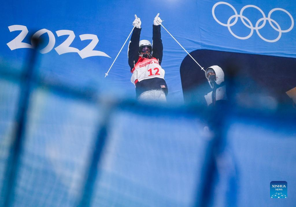 Olivia Giaccio of the United States competes in the women's moguls qualification at Genting Snow Park during the Beijing 2022 Winter Olympic Games at the Genting Snow Park in Zhangjiakou, north China's Hebei Province, Feb. 3, 2022. (Xinhua/Xue Yubin)