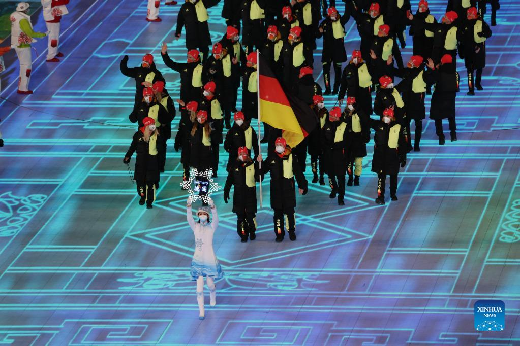 The Olympic delegation of Germany parade into the National Stadium during the opening ceremony of the Beijing 2022 Olympic Winter Games in Beijing, capital of China, Feb. 4, 2022. (Xinhua/Yang Lei)
