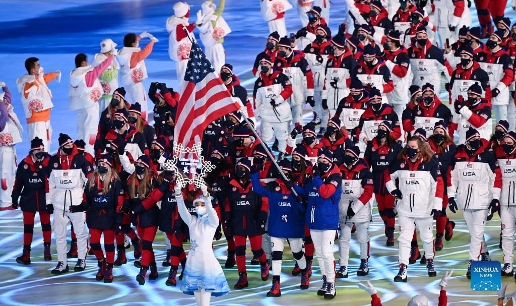 The Olympic delegation of the United States of America parade into the National Stadium during the opening ceremony of the Beijing 2022 Olympic Winter Games in Beijing, capital of China, Feb. 4, 2022. (Xinhua/Wang Yuguo)