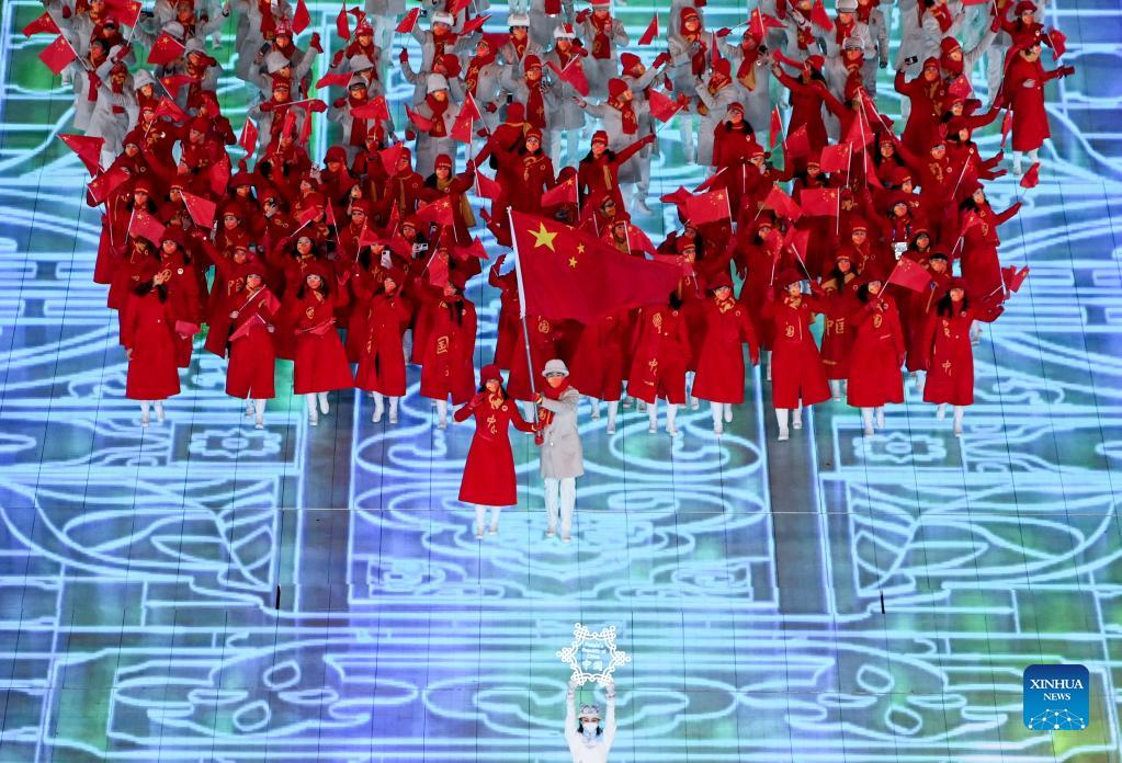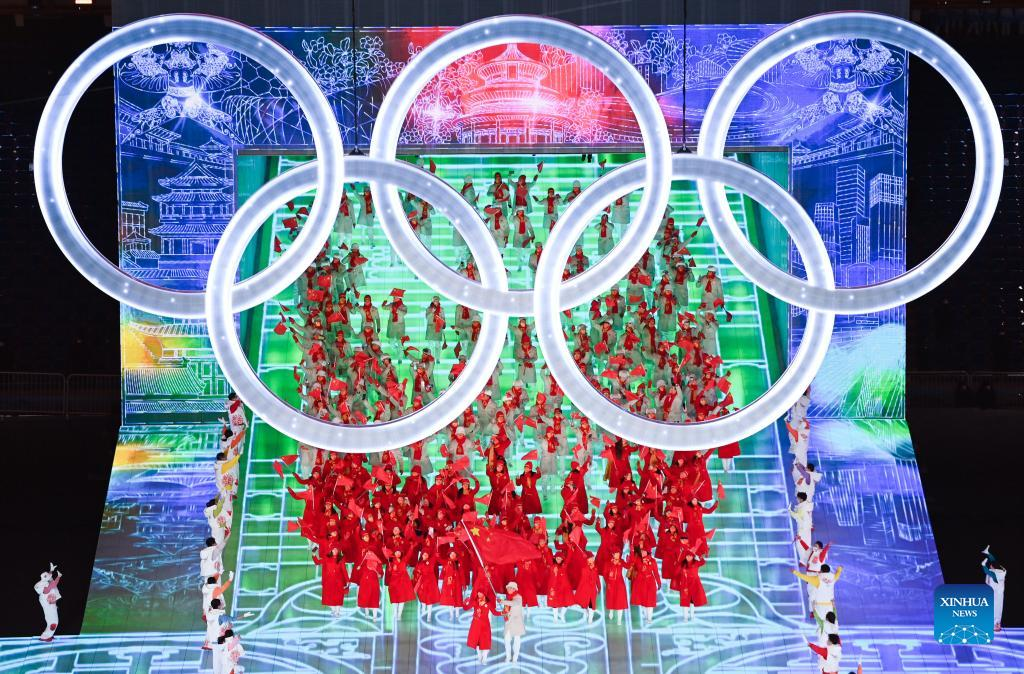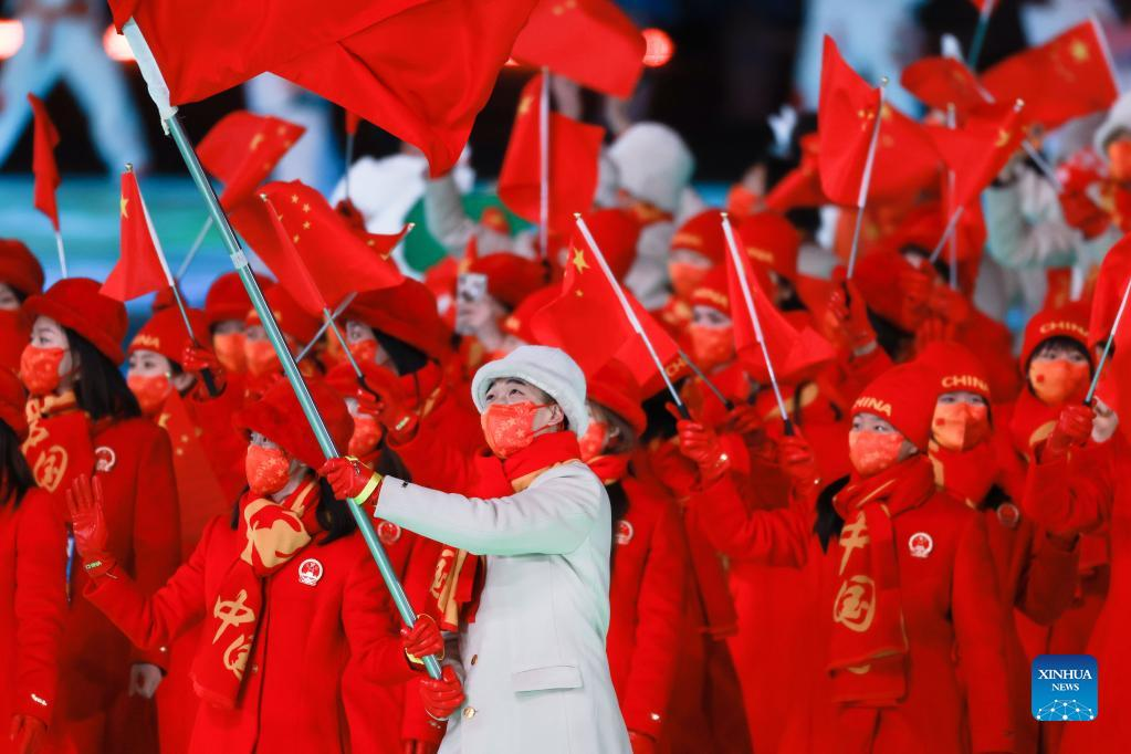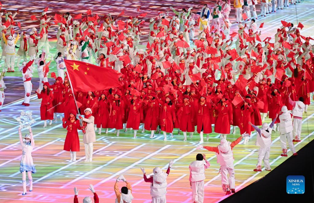 The Olympic delegation of the People's Republic of China parade into the National Stadium during the opening ceremony of the Beijing 2022 Olympic Winter Games in Beijing, capital of China, Feb. 4, 2022. (Xinhua/Wu Wei)