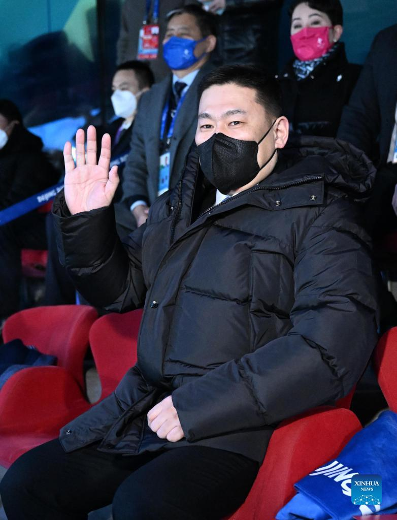 Mongolian Prime Minister Luvsannamsrai Oyun-Erdene waves during the opening ceremony of the 24th Olympic Winter Games at the National Stadium in Beijing, capital of China, Feb. 4, 2022. (Xinhua/Ma Ning)