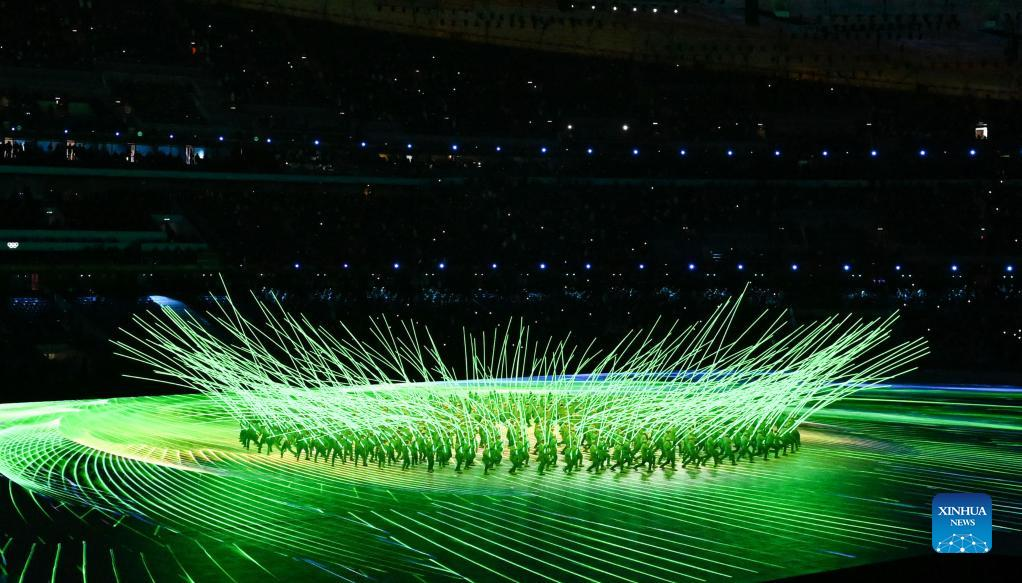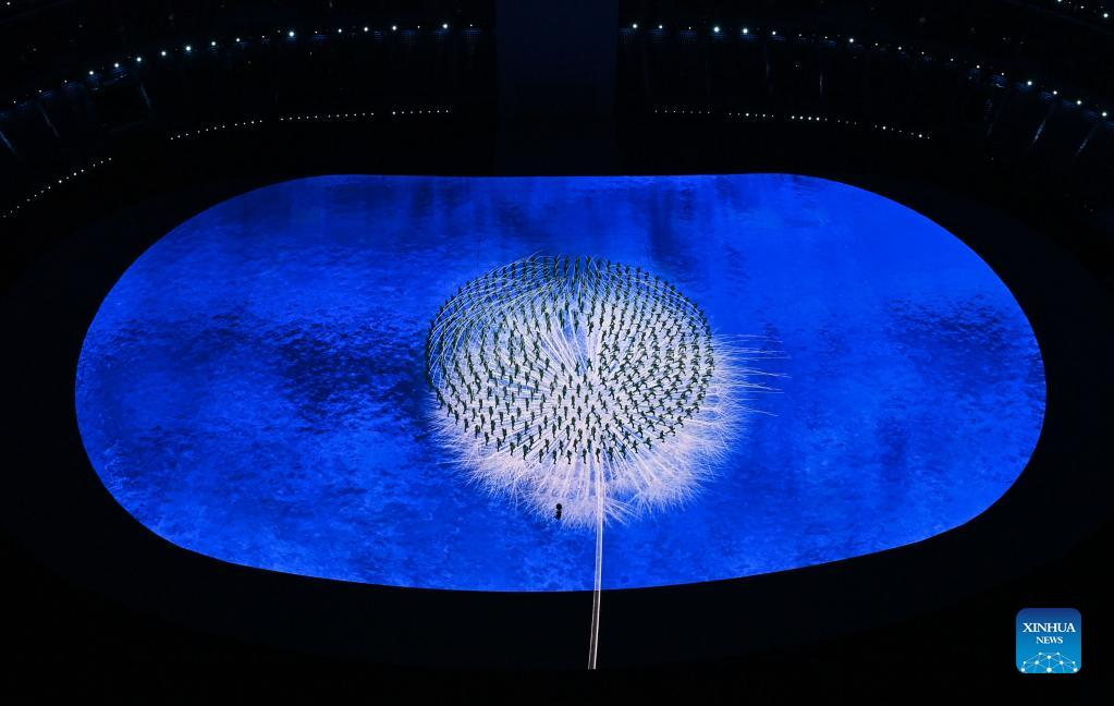 Photo taken on Feb. 4, 2022 shows a scene of performance during the opening ceremony of the Beijing 2022 Olympic Winter Games at the National Stadium in Beijing, capital of China. (Xinhua/Song Yanhua)
