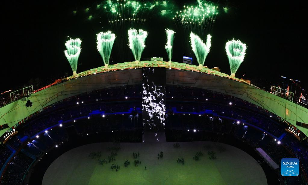 Fireworks illuminate the night sky during the opening ceremony of the Beijing 2022 Olympic Winter Games at the National Stadium in Beijing, capital of China, Feb. 4, 2022. (Xinhua/Song Yanhua)