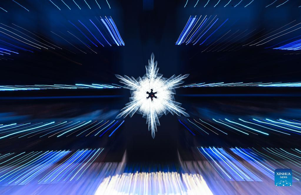 Artists perform with the large "Snowflake" in the air during the opening ceremony of the Beijing 2022 Olympic Winter Games at the National Stadium in Beijing, capital of China, Feb. 4, 2022. (Xinhua/Wu Wei)