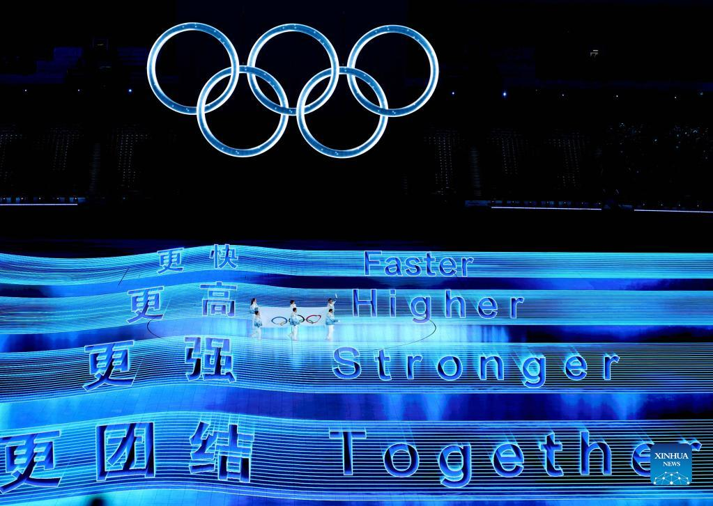 Skaters perform during the opening ceremony of the Beijing 2022 Olympic Winter Games at the National Stadium in Beijing, capital of China, Feb. 4, 2022. (Xinhua/Li Ziheng)