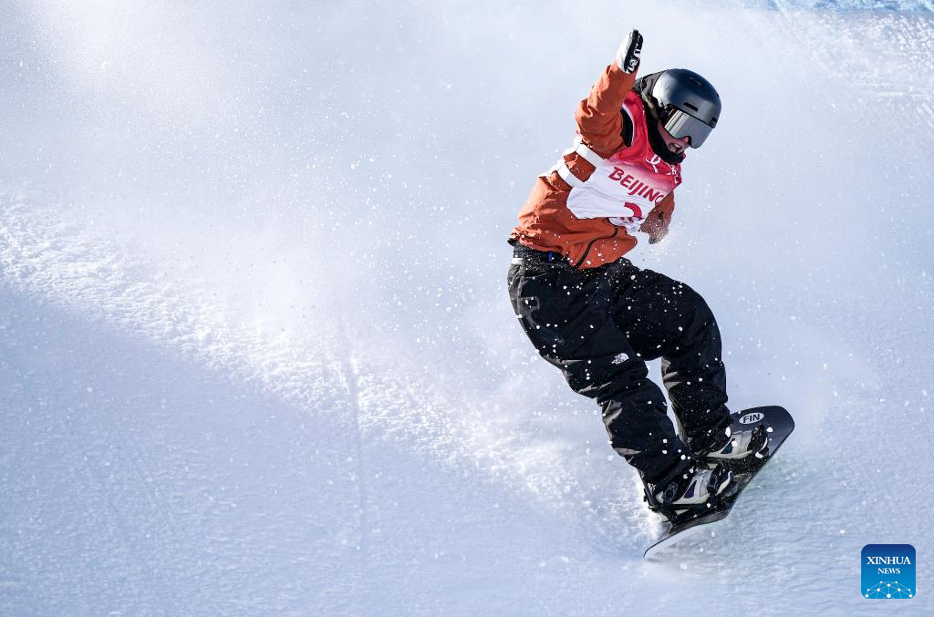Carola Niemelae of Finland competes during women's snowboard slopestyle qualification match at the Genting Snow Park in Zhangjiakou, north China's Hebei Province, Feb. 5, 2022. (Xinhua/Xue Yubin)