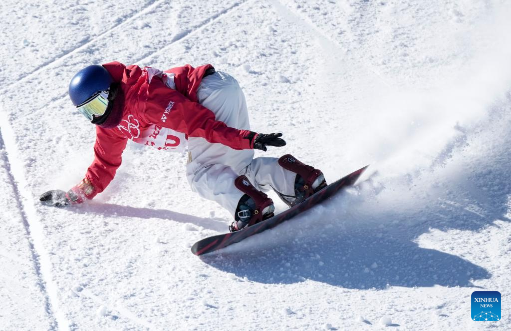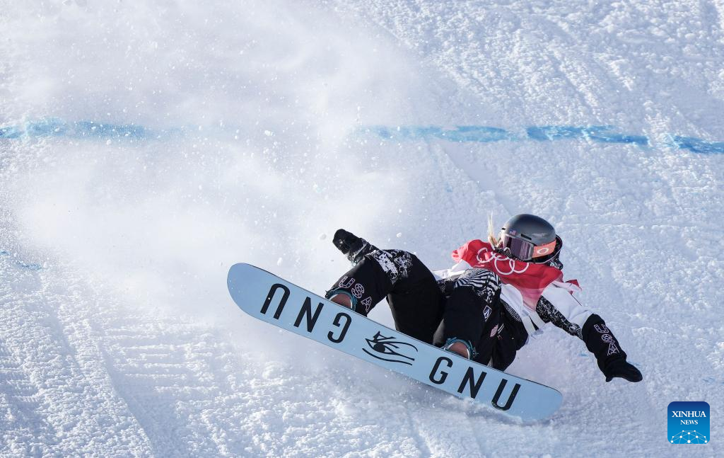 Tess Coady of Australia competes during the women's snowboard slopestyle qualification at the Genting Snow Park in Zhangjiakou, north China's Hebei Province, Feb. 5, 2022. (Xinhua/Xue Yubin)
