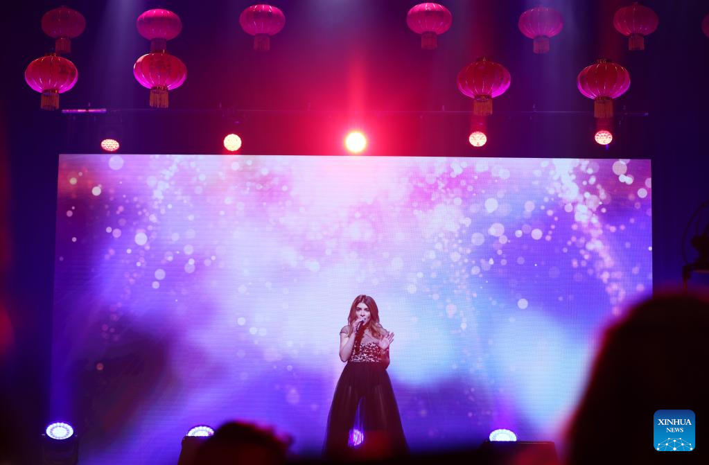 French singer Julie Zenatti performs during the recording of the "Peace, Friendship, Love" concert at Theater du Gymnase Marie Bell in Paris, France, Jan. 26, 2022. On the first day of the Year of the Tiger, a special program dedicated to the Beijing Winter Olympic Games and Paris 2024 Olympic Games was broadcast on France's TV5 Monde on Feb. 1, 2022.