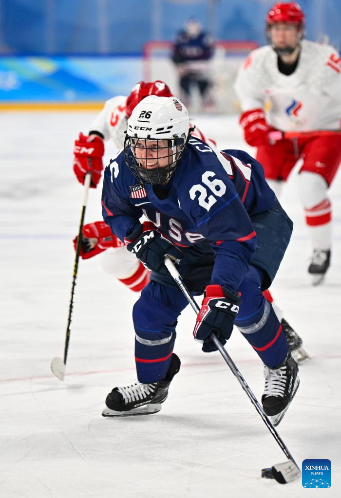 (220206) -- BEIJING, Feb. 5, 2022 (Xinhua) -- Kendall Coyne Schofield of the United States competes during the women's ice hockey preliminary round Group A match between the United States and the Russian Olympic Committee at Wukesong Sports Centre in Beijing, capital of China, Feb. 5, 2022. (Xinhua/Song Yanhua)