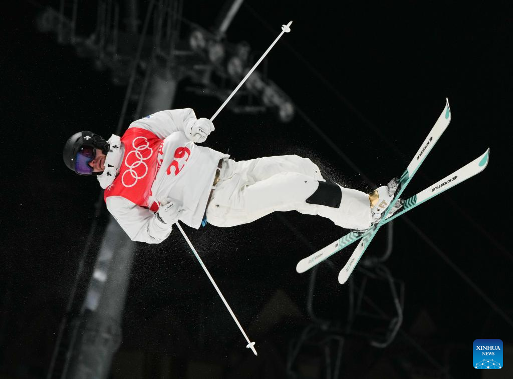 Olli Penttala of Finland competes in Free Style Skiing Men's Moguls Final at Genting Snow Park in Zhangjiakou, north China's Hebei Province, Feb. 5, 2022. (Xinhua/Yang Shiyao)