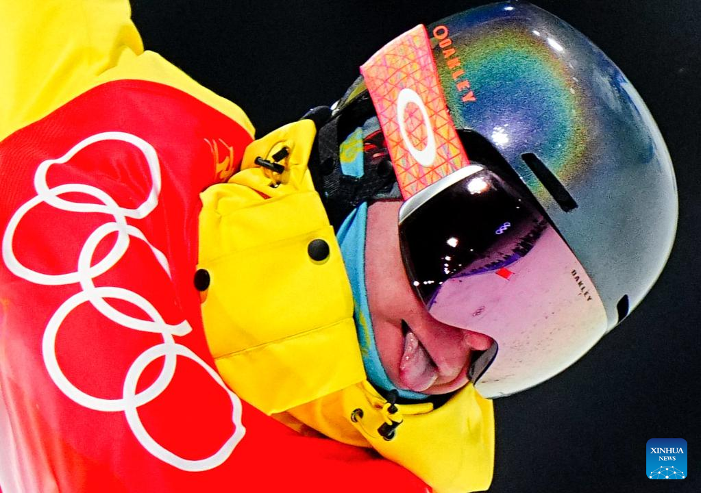 Dmitriy Reikherd of Kazakhstan competes in Free Style Skiing Men's Moguls Final at Genting Snow Park in Zhangjiakou, north China's Hebei Province, Feb. 5, 2022. (Xinhua/Xu Chang)