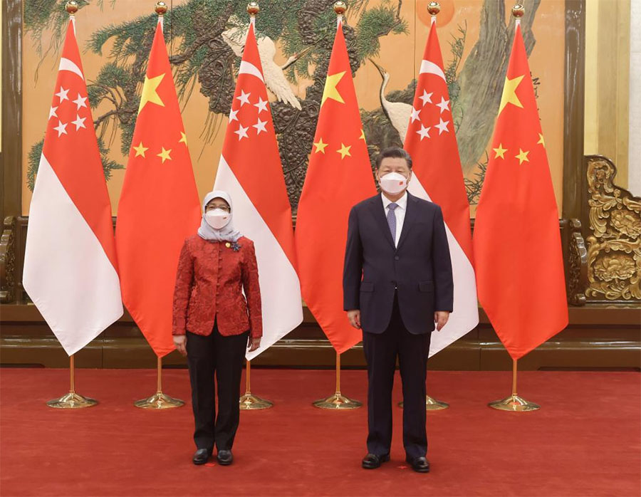 Facing the world's major changes and the pandemic, both unseen in a century, China-Singapore relations need to buck the trend and display vigor and vitality, Xi said.