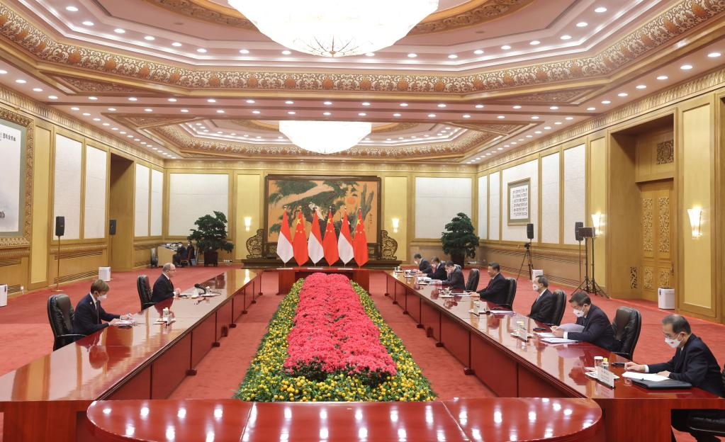 Chinese President Xi Jinping meets with Prince of Monaco Albert II at the Great Hall of the People in Beijing, capital of China, Feb. 6, 2022. (Xinhua/Ding Lin)