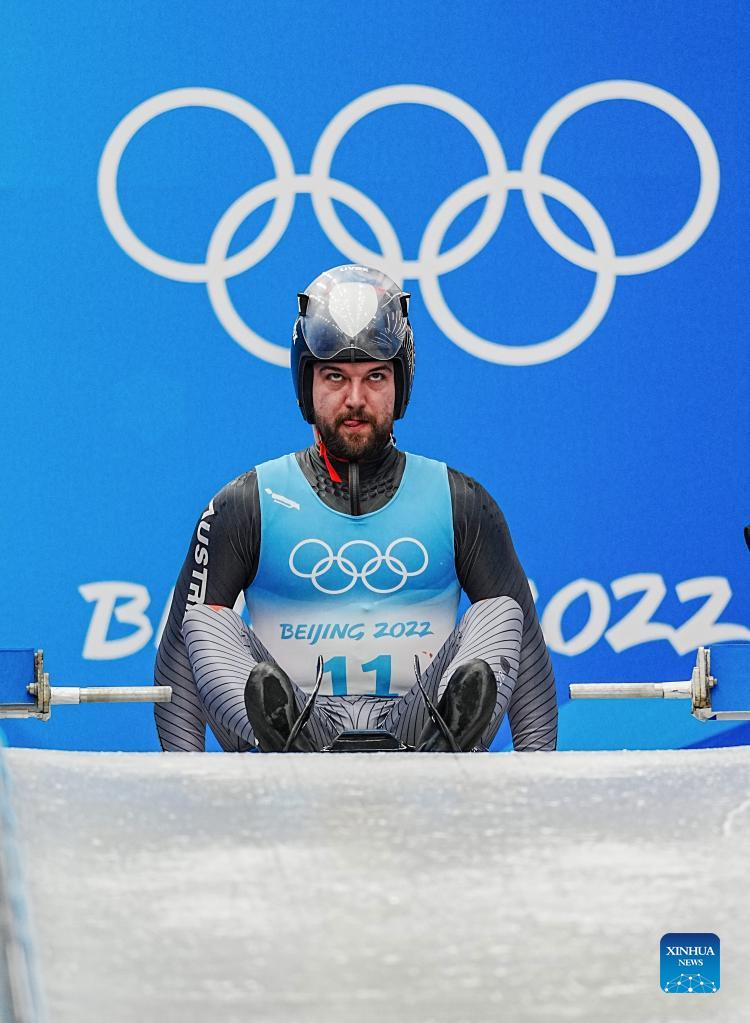 David Gleirscher of Austria competes during Men's Singles Run of luge event at the Yanqing National Sliding Centre in Yanqing District of Beijing, capital of China, Feb. 6, 2022. (Xinhua/Jiang Wenyao)
