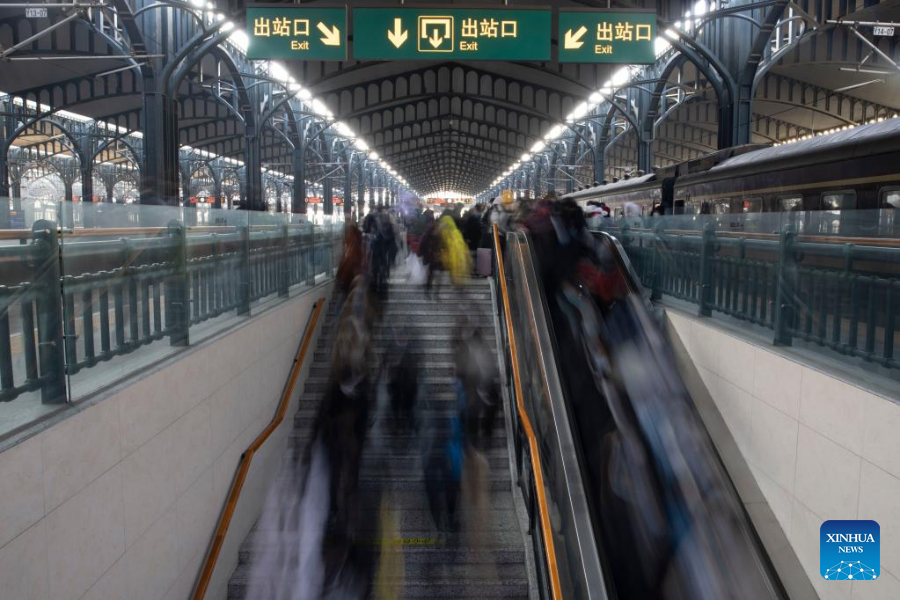 The railway station saw an increase of passenger trips as this year's Spring Festival holiday comes to an end. (Xinhua/Zhang Tao)