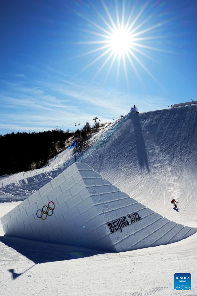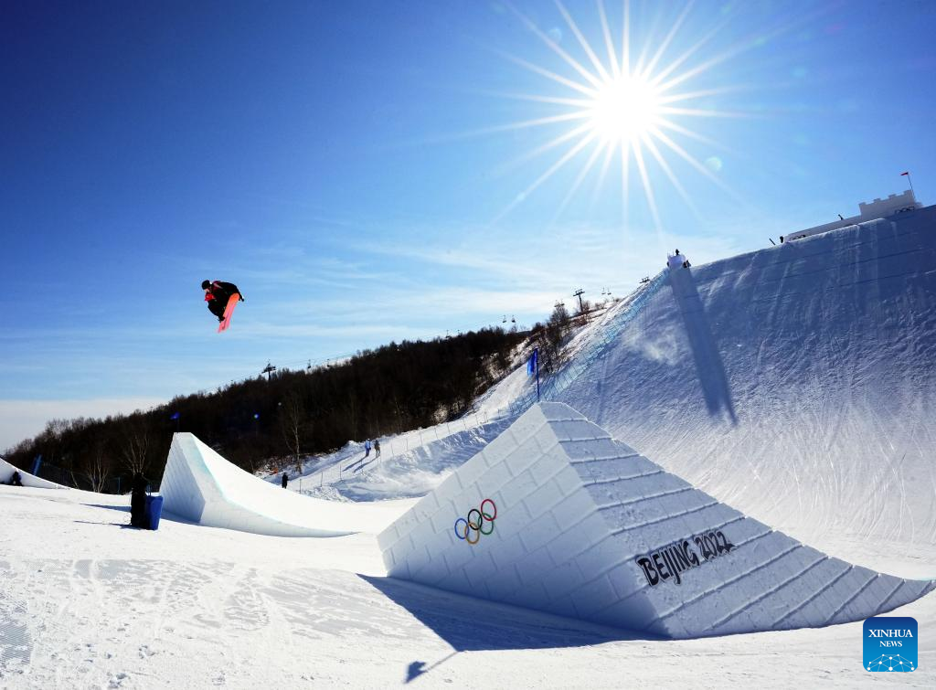 China's Su Yiming competes during the men's snowboard slopestyle qualification at the Genting Snow Park in Zhangjiakou, north China's Hebei Province, Feb. 6, 2022. (Xinhua/Xu Chang)
