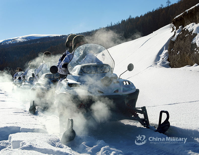 Soldiers assigned to the Hongshanzui Border Defense Company of the PLA Xinjiang Military Command go on patrol in the Altai Mountains against thick snow during the Spring Festival, also known as the Chinese Lunar New Year. (eng.chinamil.com.cn/Photo by Xiao Guotao)