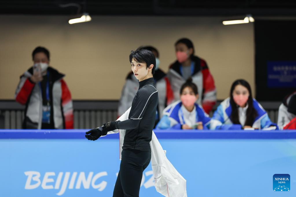 Hanyu Yuzuru of Japan trains at Capital Indoor Stadium in Beijing, capital of China, Feb. 7, 2022. (Xinhua/Cao Can)
