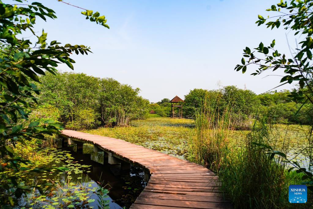 Photo taken on Feb. 2, 2022 shows the view of the Beddagana Wetland Park, on the outskirts of Colombo, Sri Lanka. (Xinhua/Tang Lu)