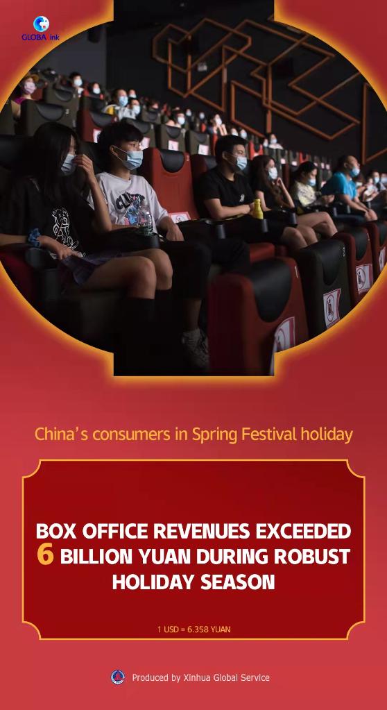 During the holiday, third-tier cities saw a better performance in box office revenue than that of first-tier cities, the report said. As of Sunday, the total box office of new films during the 2022 Spring Festival topped 6 billion yuan.