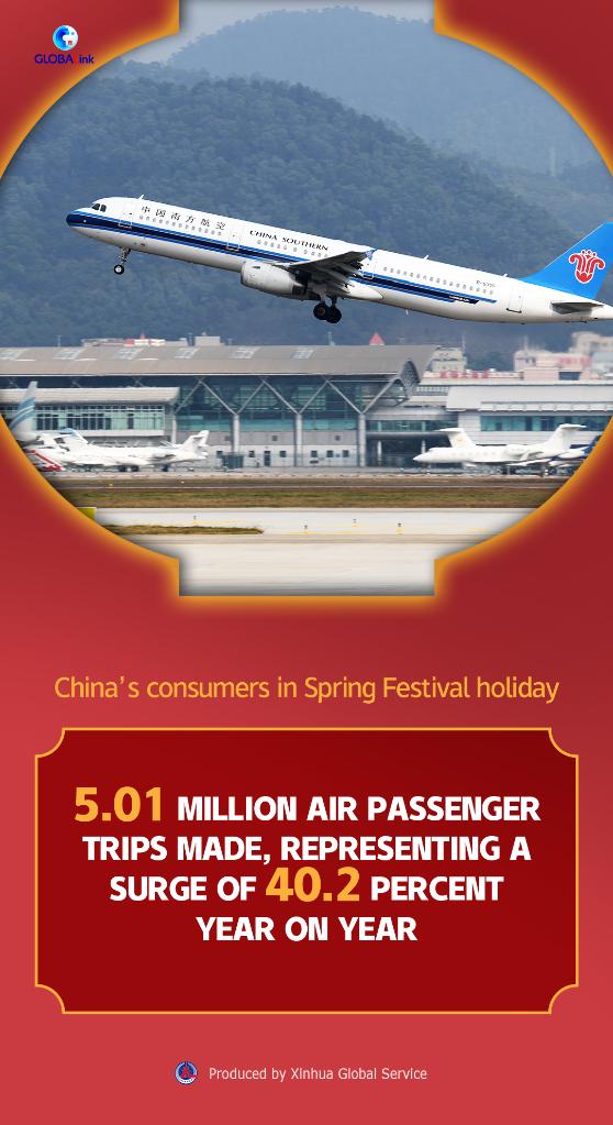BEIJING, Feb. 7 (Xinhua) -- With the Olympic panda mascot Bing Dwen Dwen sold out all over China due to people's enthusiasm for the 2022 Games, China saw a brisk consumer market during the Lunar New Year holiday, the first seven-day long festival of the year that ended Sunday.