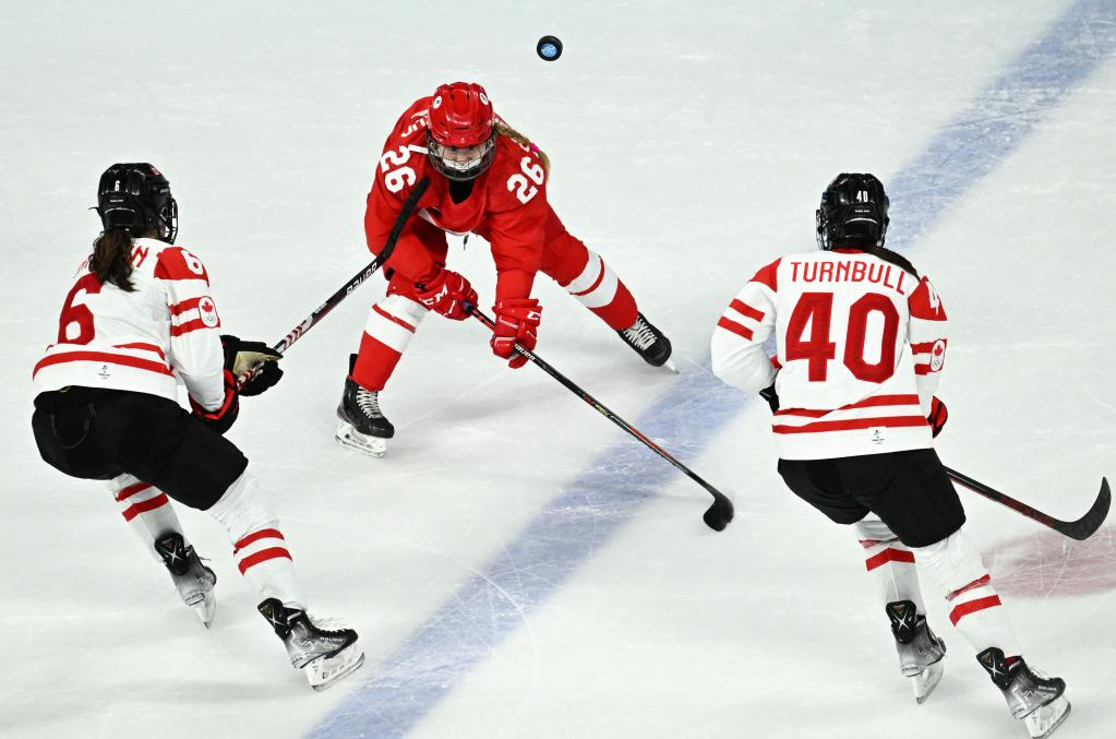 BEIJING, Feb. 7 (Xinhua) -- Women's ice hockey giant Canada notched its third victory in a row after beating the Russian Olympic Committee (ROC) 6-1 in Group A at Beijing 2022 on Monday.