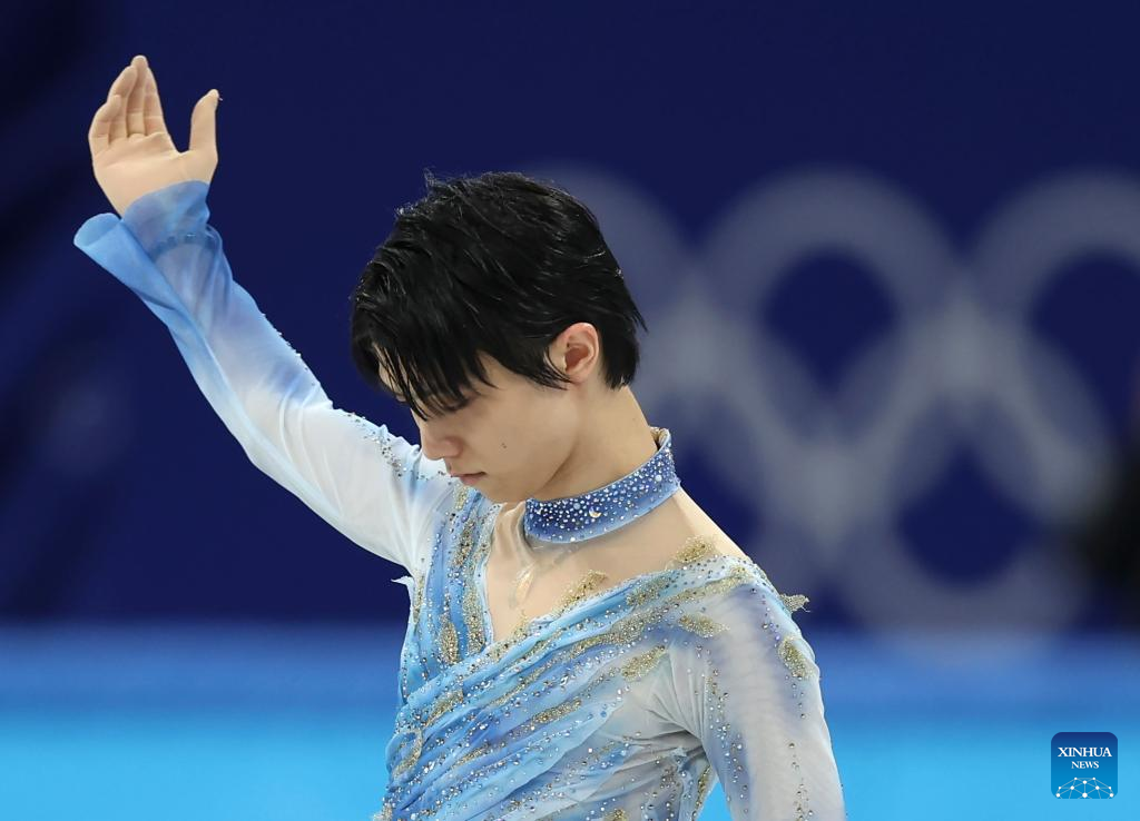 Hanyu Yuzuru of Japan performs during the figure skating men single skating short program at Capital Indoor Stadium in Beijing, capital of China, Feb. 8, 2022. (Xinhua/Cao Can)