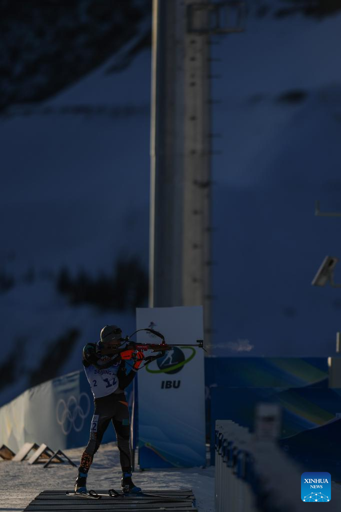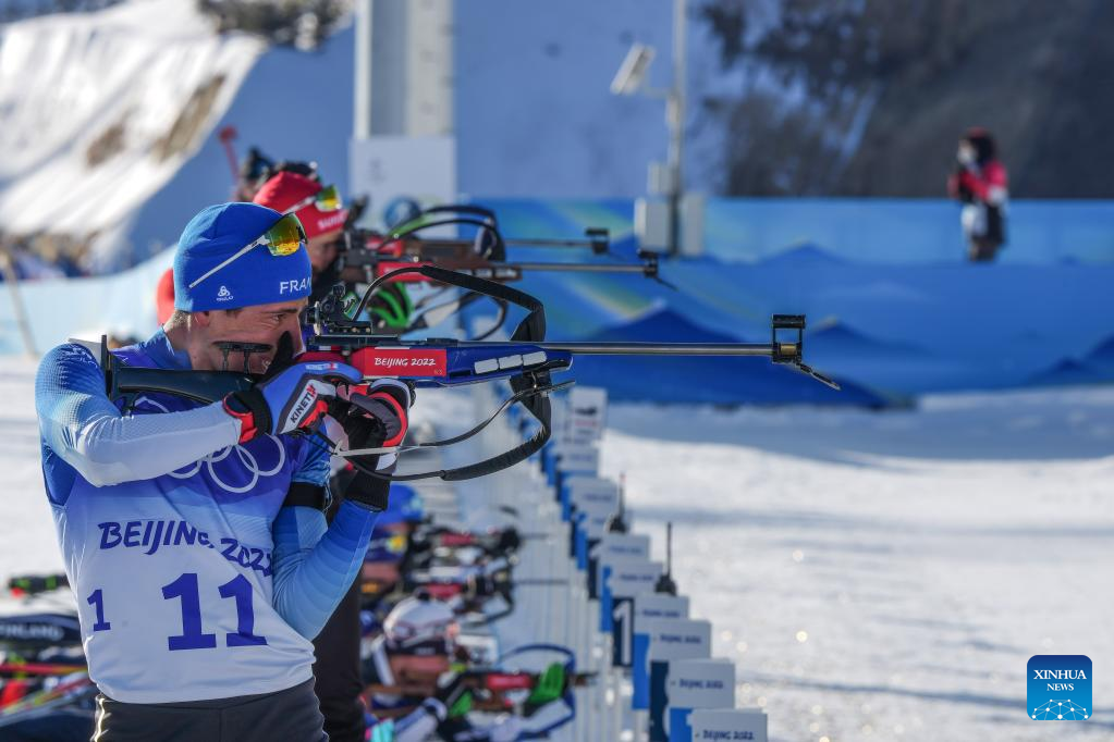 Quentin Fillon Maillet of France competes during biathlon men's 20km individual at National Biathlon Centre in Zhangjiakou, north China's Hebei Province, Feb. 8, 2022. (Xinhua/Jiang Hongjing)