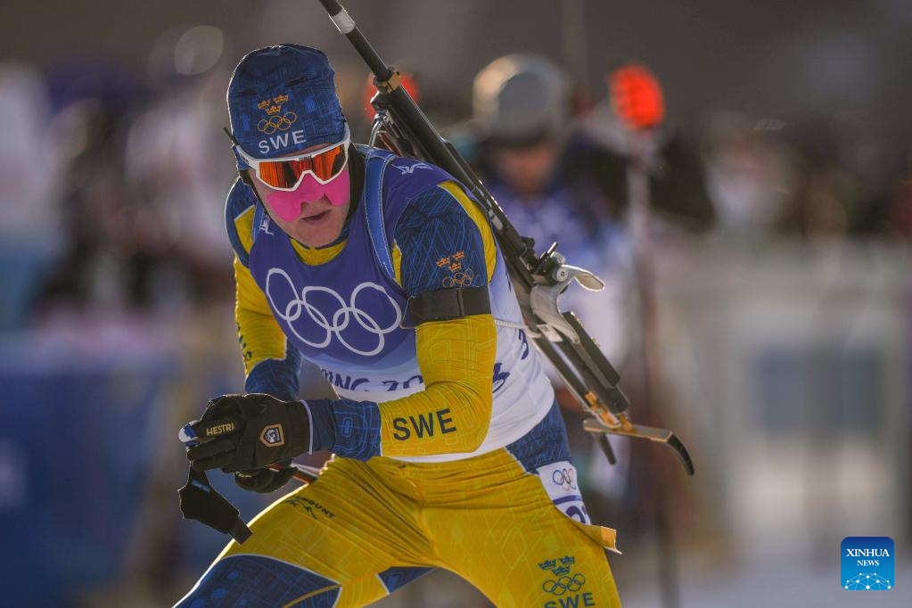 Sebastian Samuelsson of Sweden competes during biathlon men's 20km individual at National Biathlon Centre in Zhangjiakou, north China's Hebei Province, Feb. 8, 2022. (Xinhua/Peng Ziyang)