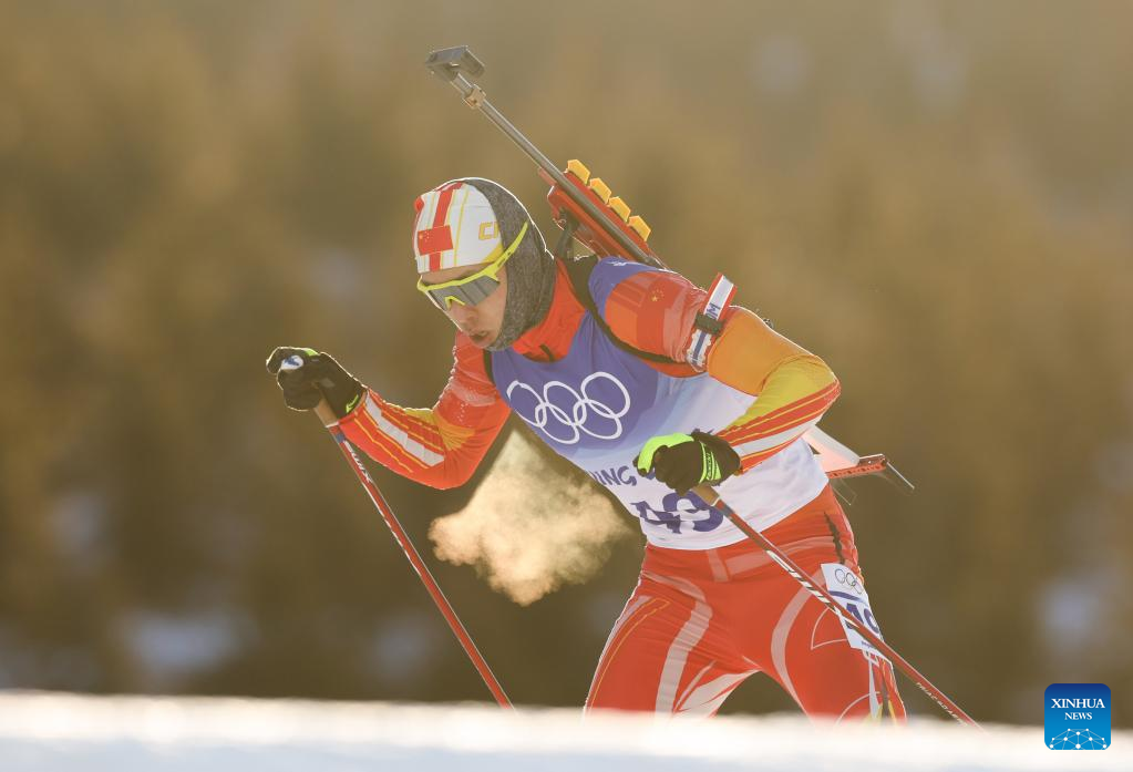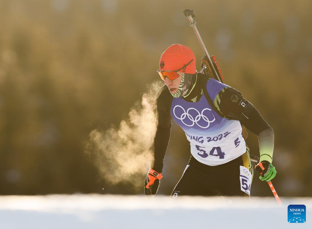 Cheng Fangming of China competes during biathlon men's 20km individual at National Biathlon Centre in Zhangjiakou, north China's Hebei Province, Feb. 8, 2022. (Xinhua/Ding Ting)