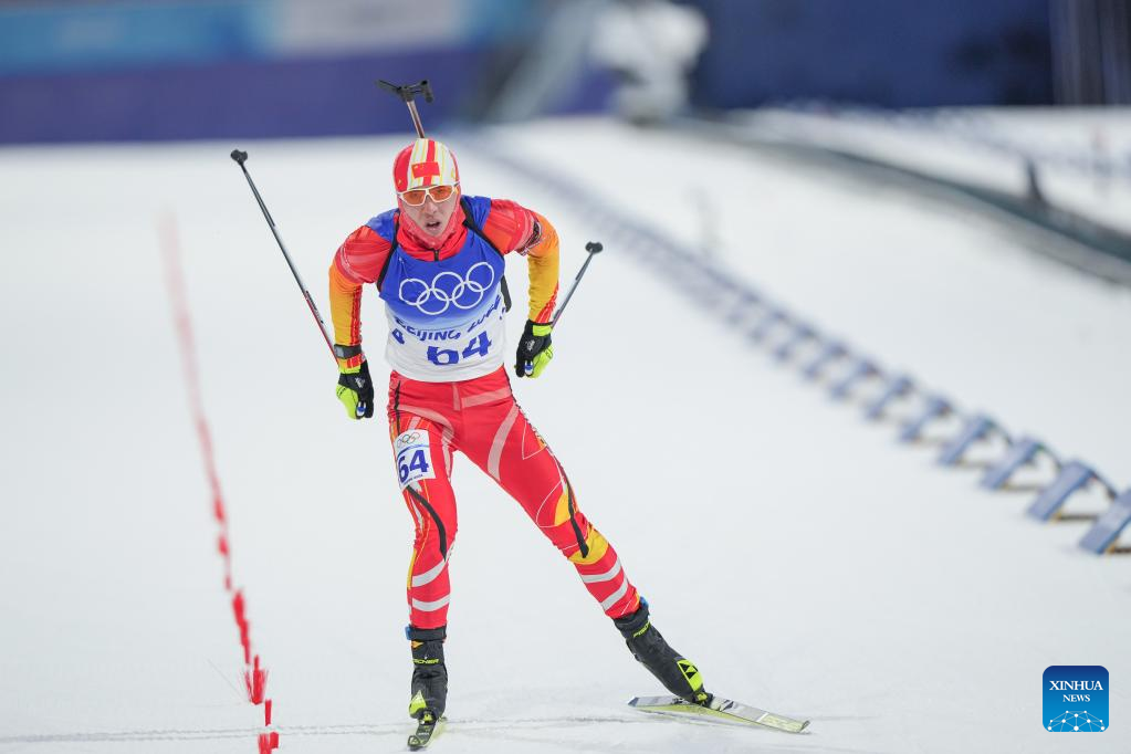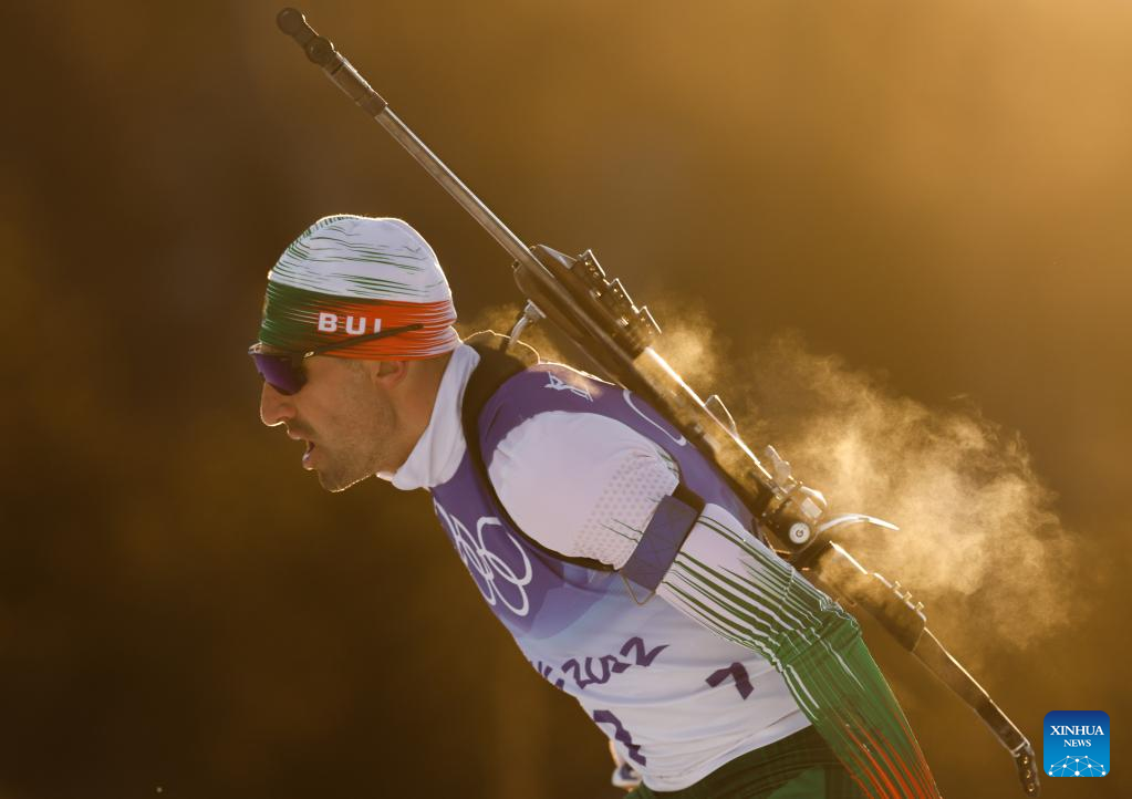 Dimitar Gerdzhikov of Bulgaria competes during biathlon men's 20km individual at National Biathlon Centre in Zhangjiakou, north China's Hebei Province, Feb. 8, 2022. (Xinhua/Ding Ting)