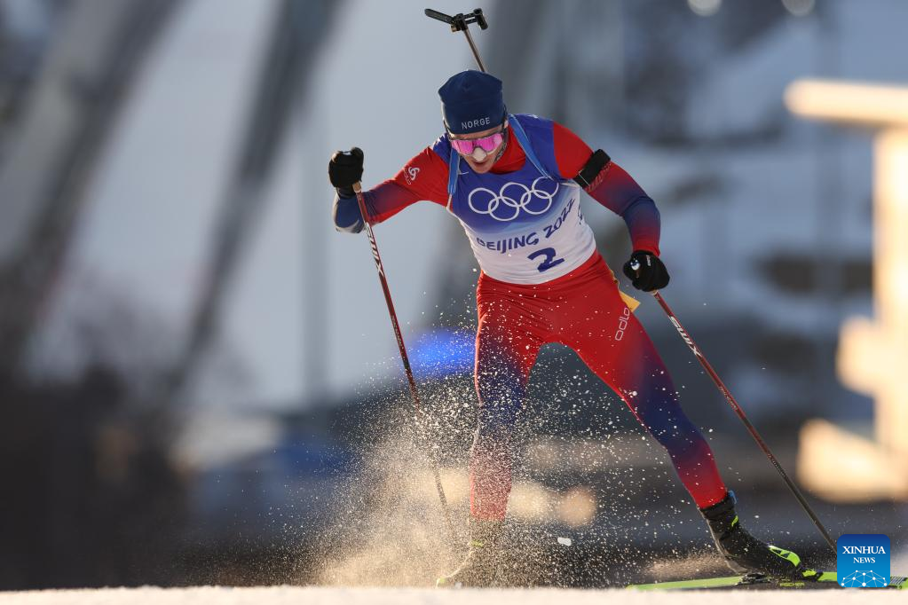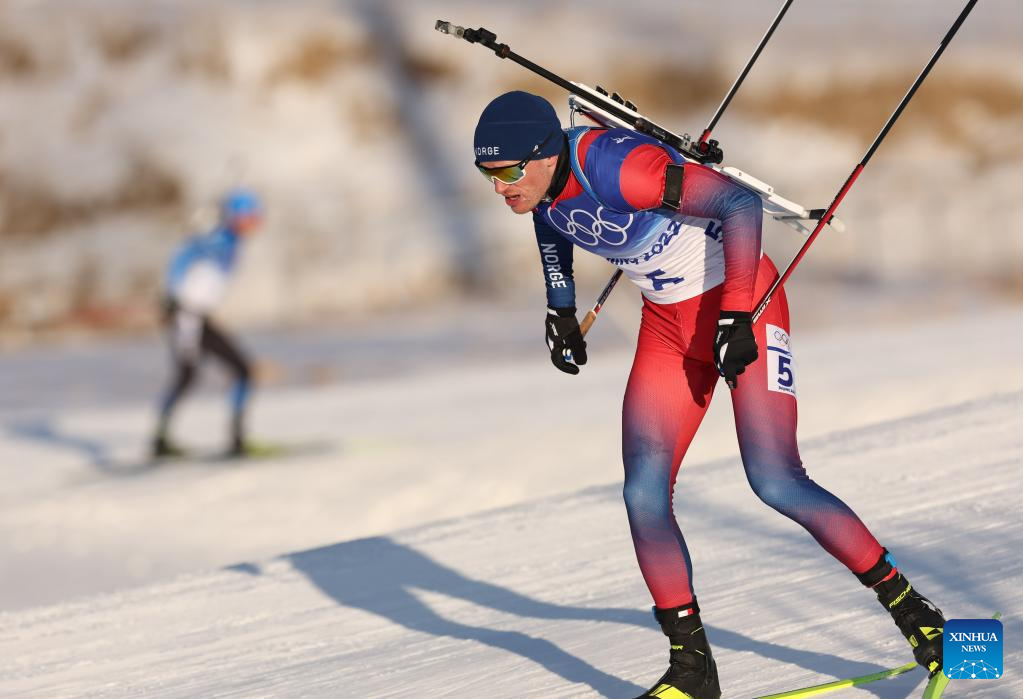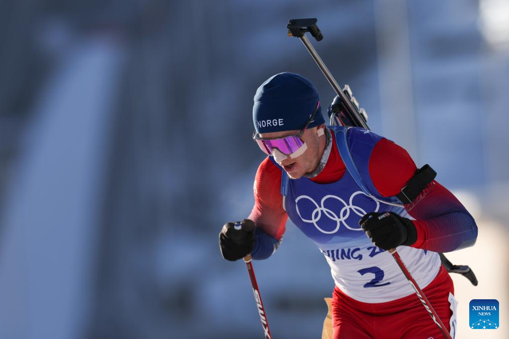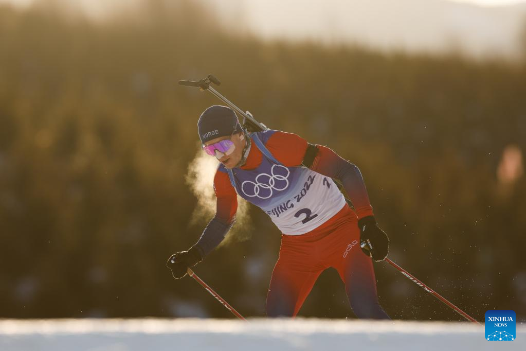 Johannes Thingnes Boe of Norway competes during biathlon men's 20km individual at National Biathlon Centre in Zhangjiakou, north China's Hebei Province, Feb. 8, 2022. (Xinhua/Jiang Hongjing)