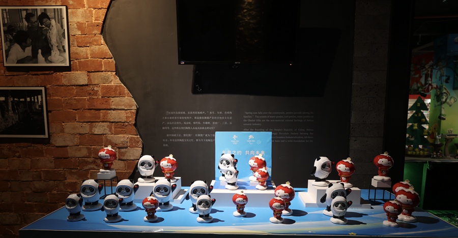 Photo shows porcelain figures of Bing Dwen Dwen and Shuey Rhon Rhon, the mascots of the Beijing 2022 Olympic and Paralympic Winter Games. (Photo/Chen Xiaoyang)
