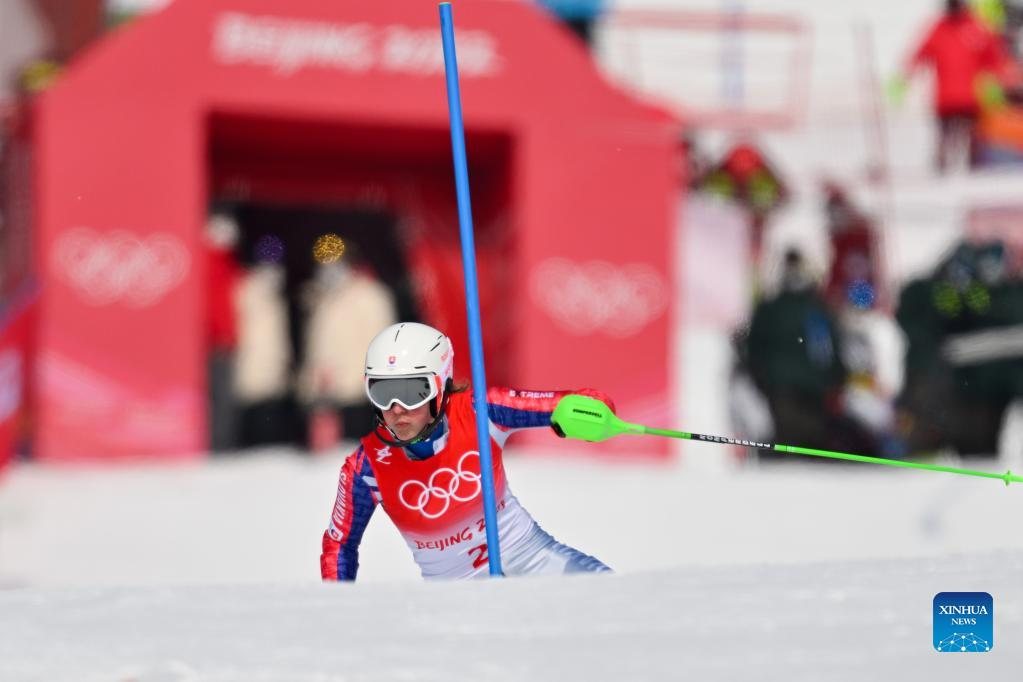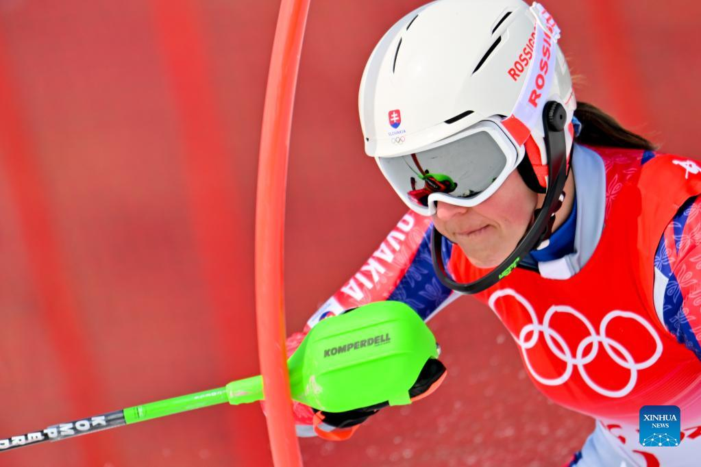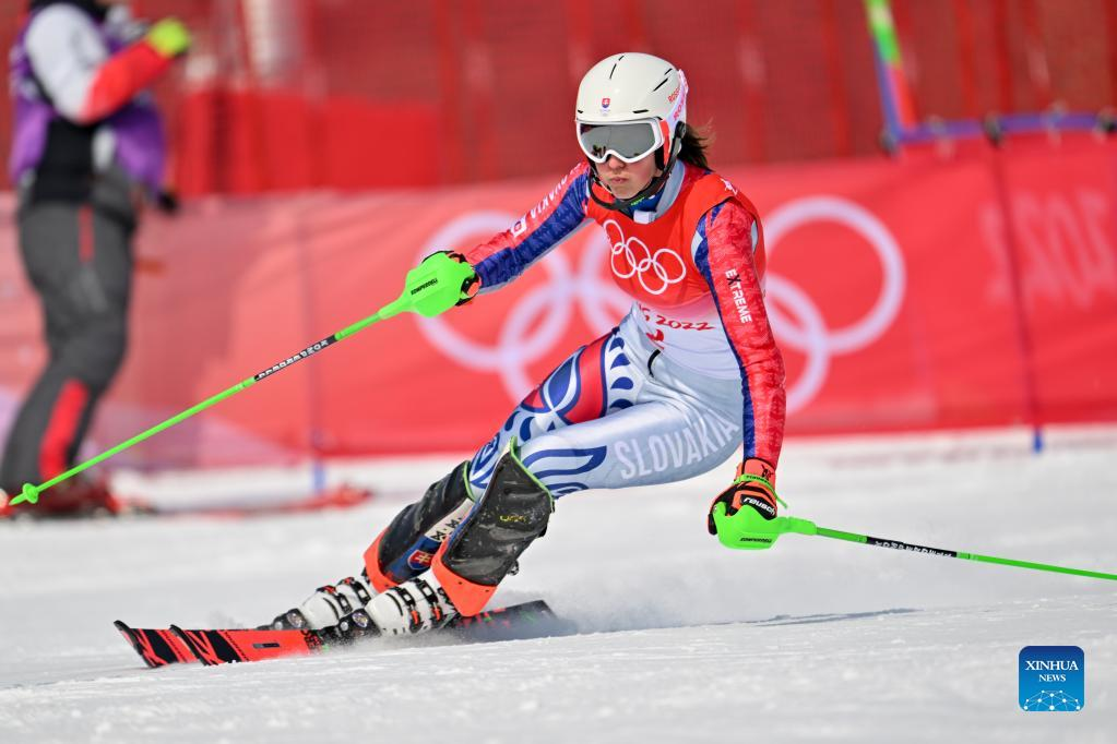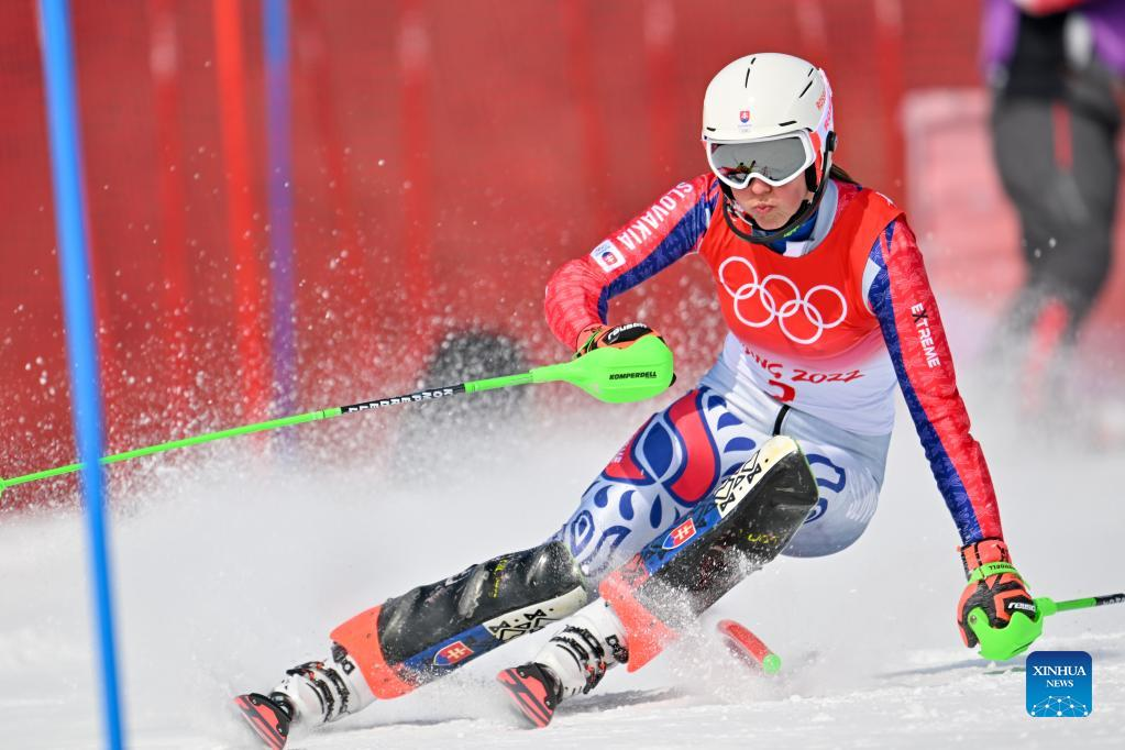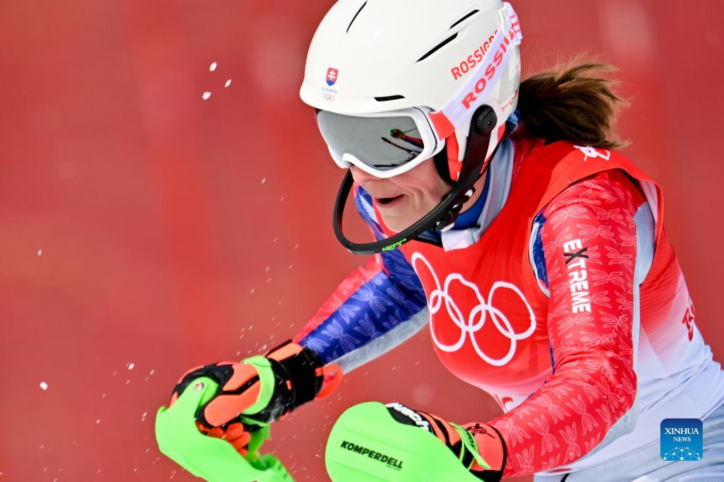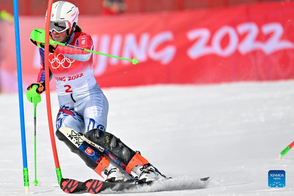 Petra Vlhova of Slovakia competes during Alpine Skiing women's slalom of the Beijing 2022 Winter Olympics at the National Alpine Skiing Centre in Yanqing District, Beijing, capital of China, Feb. 9, 2022. (Xinhua/Chen Yichen)