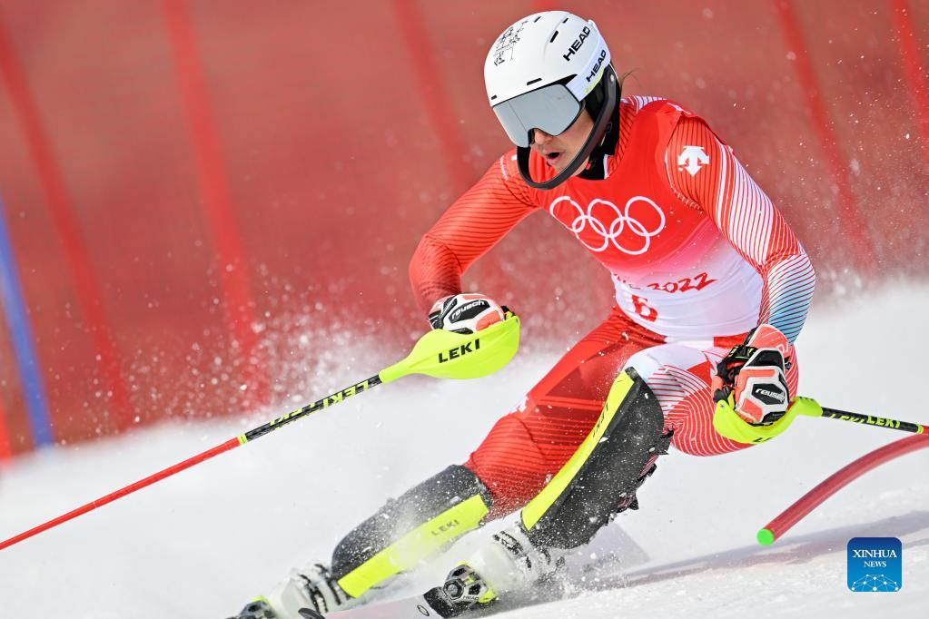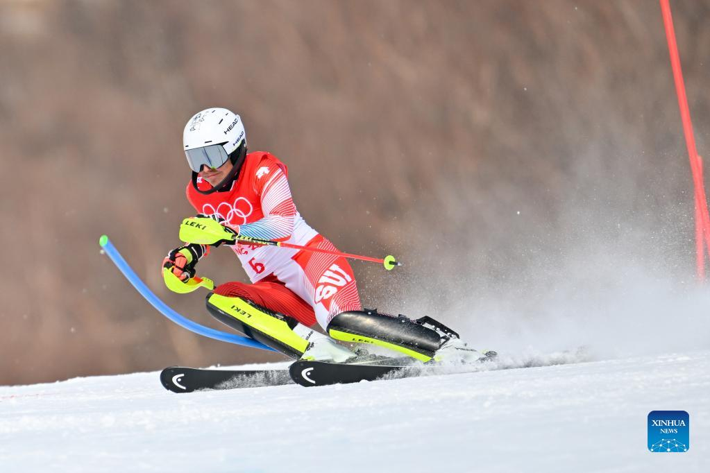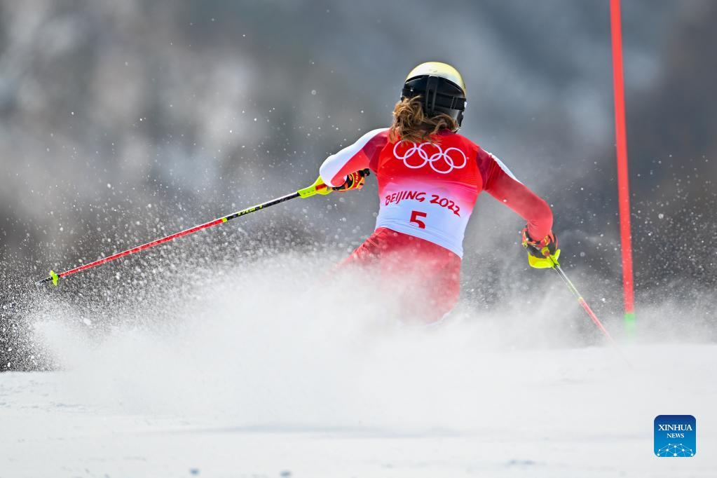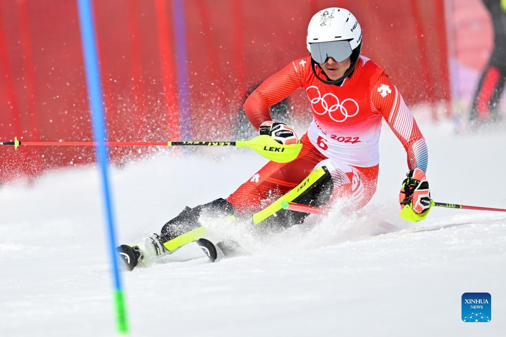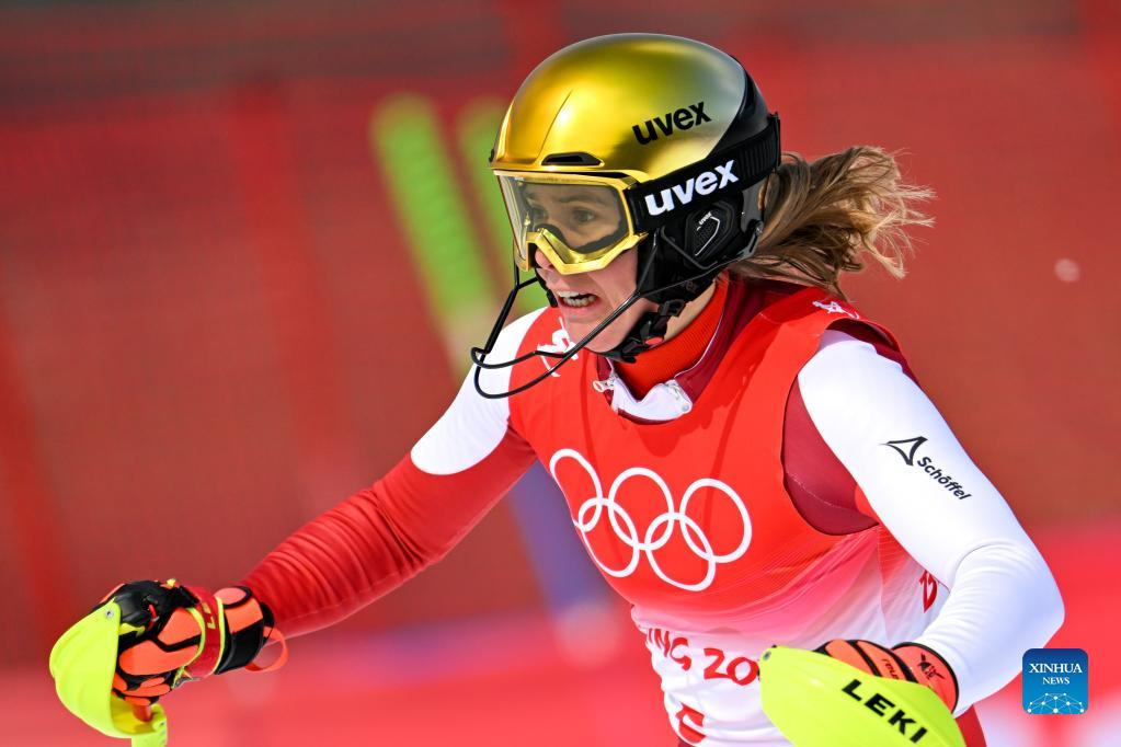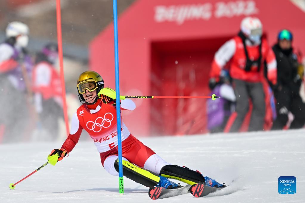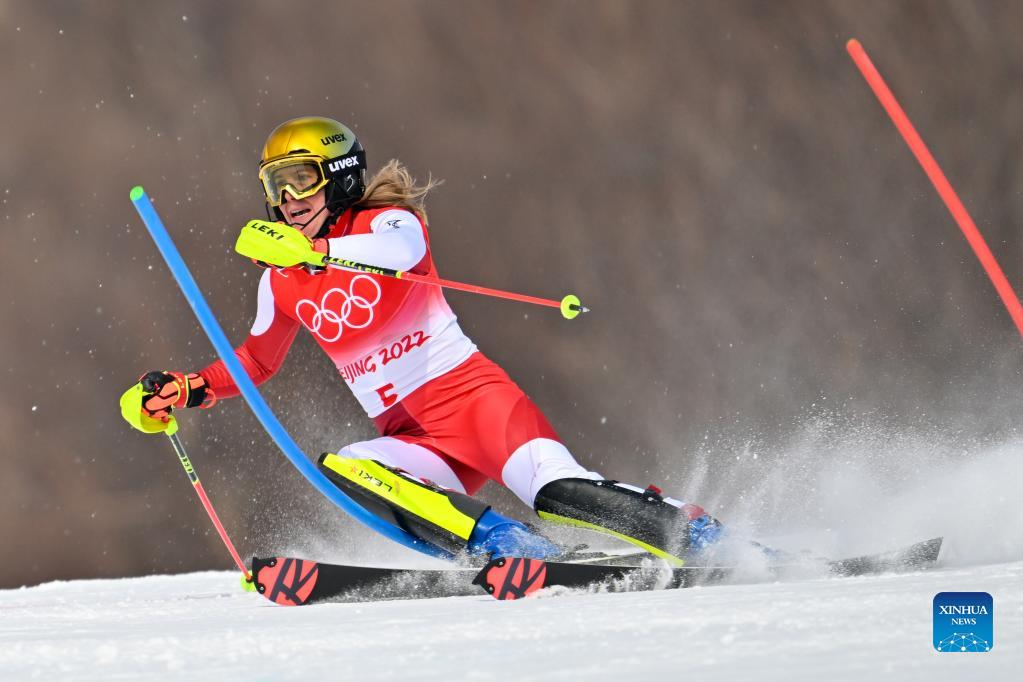 Wendy Holdener of Switzerland competes during Alpine Skiing women's slalom of the Beijing 2022 Winter Olympics at the National Alpine Skiing Centre in Yanqing District, Beijing, capital of China, Feb. 9, 2022. (Xinhua/Chen Yichen)