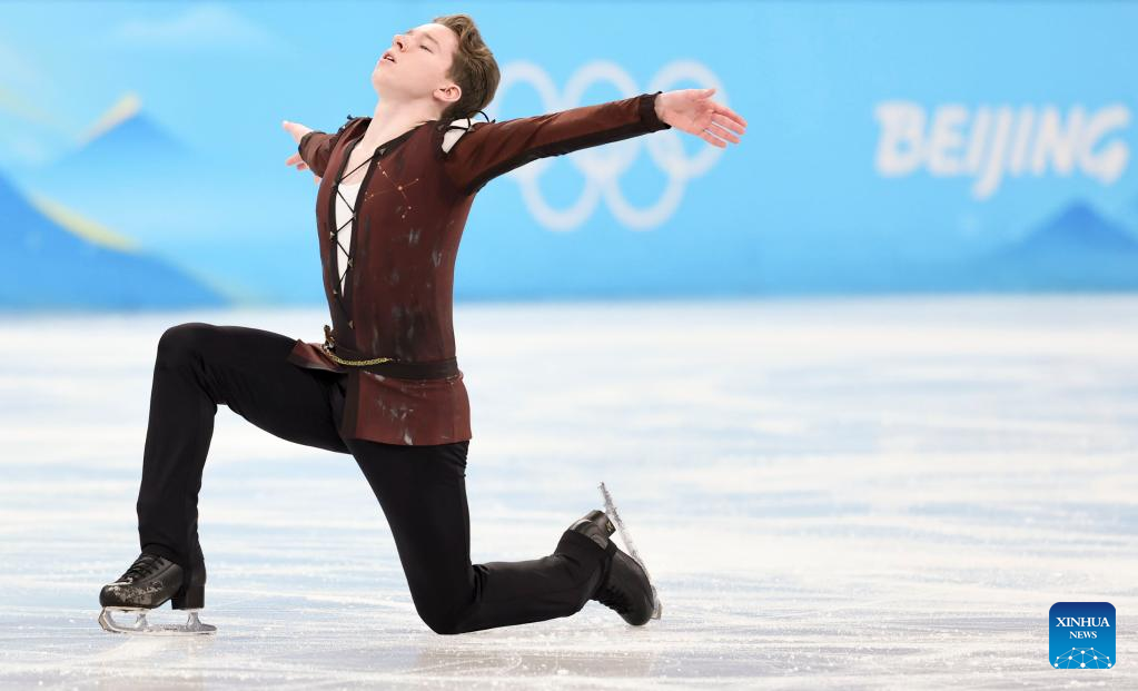 Andrei Mozalev of ROC performs during the figure skating men single skating free skating match of Beijing 2022 Winter Olympics at Capital Indoor Stadium in Beijing, capital of China, Feb. 10, 2022. (Xinhua/Lan Hongguang)