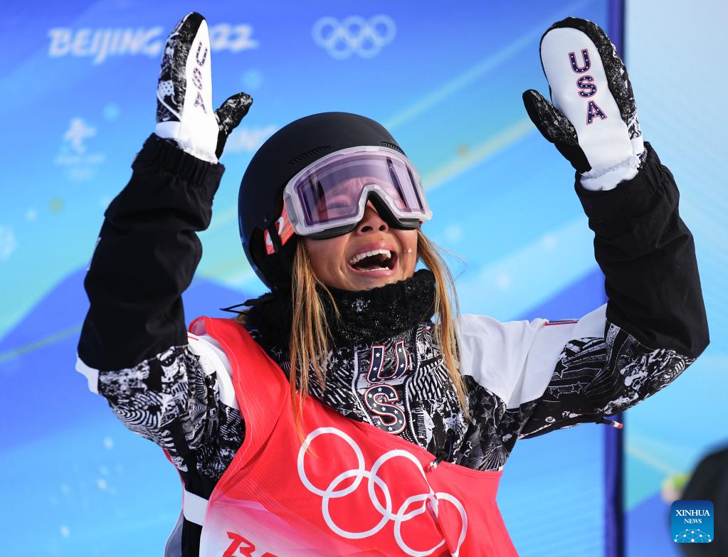BEIJING, Feb. 10 (Xinhua) -- Reigning champion Chloe Kim of the United States successfully defended the title of the women's snowboard halfpipe at the Beijing Olympic Winter Games here on Thursday.