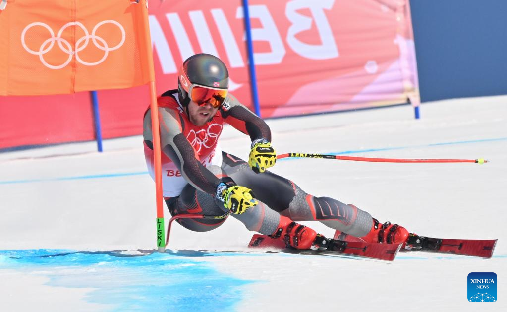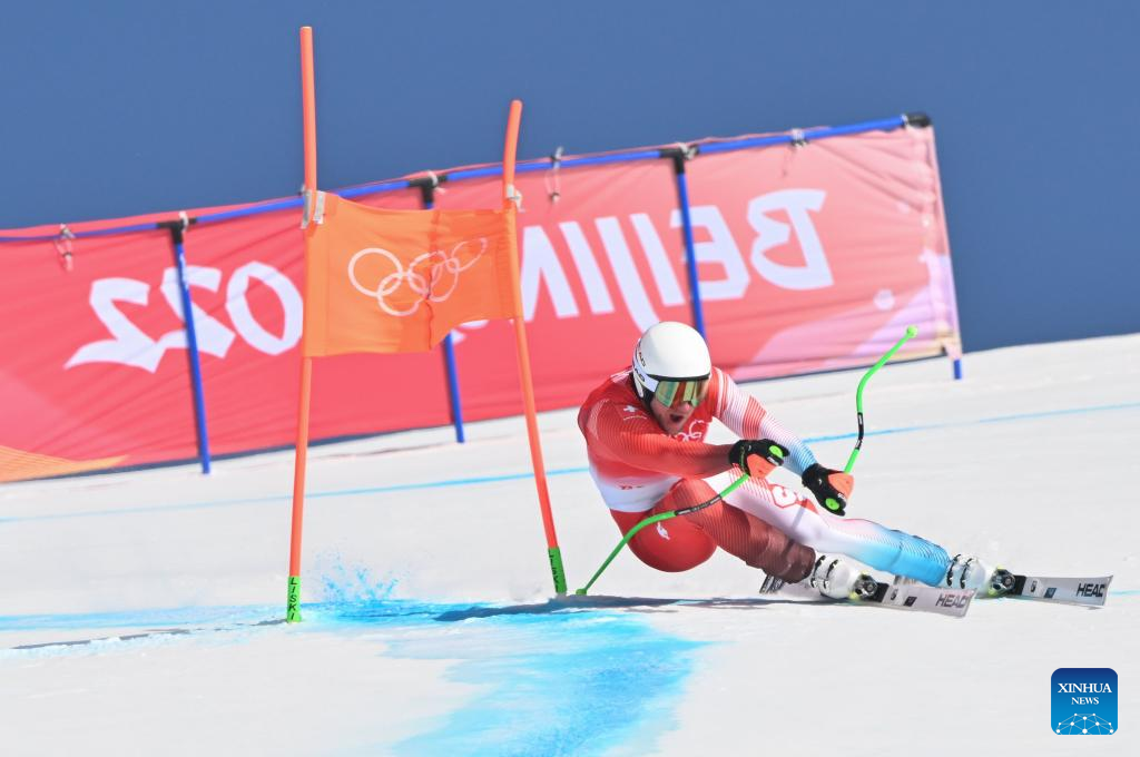 Justin Murisier of Switzerland competes during alpine skiing men's alpine combined at the National Alpine Skiing Centre in Yanqing District, Beijing, capital of China, Feb. 10, 2022. (Xinhua/Chen Yichen)