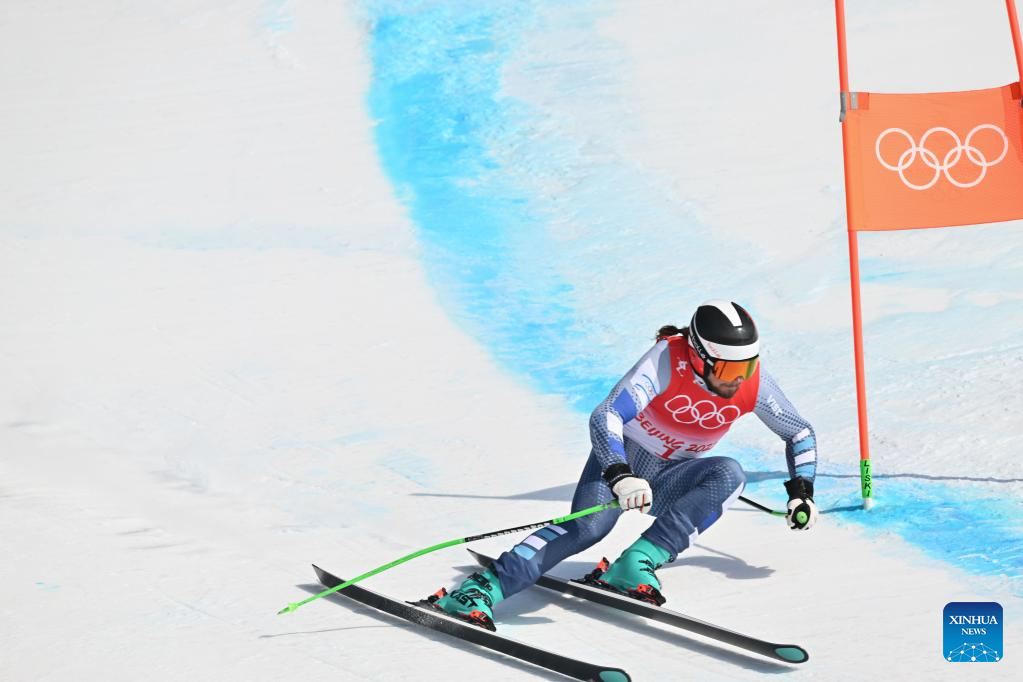 Barnabas Szollos of Israel competes during alpine skiing men's alpine combined at the National Alpine Skiing Centre in Yanqing District, Beijing, capital of China, Feb. 10, 2022. (Xinhua/Chen Yichen)