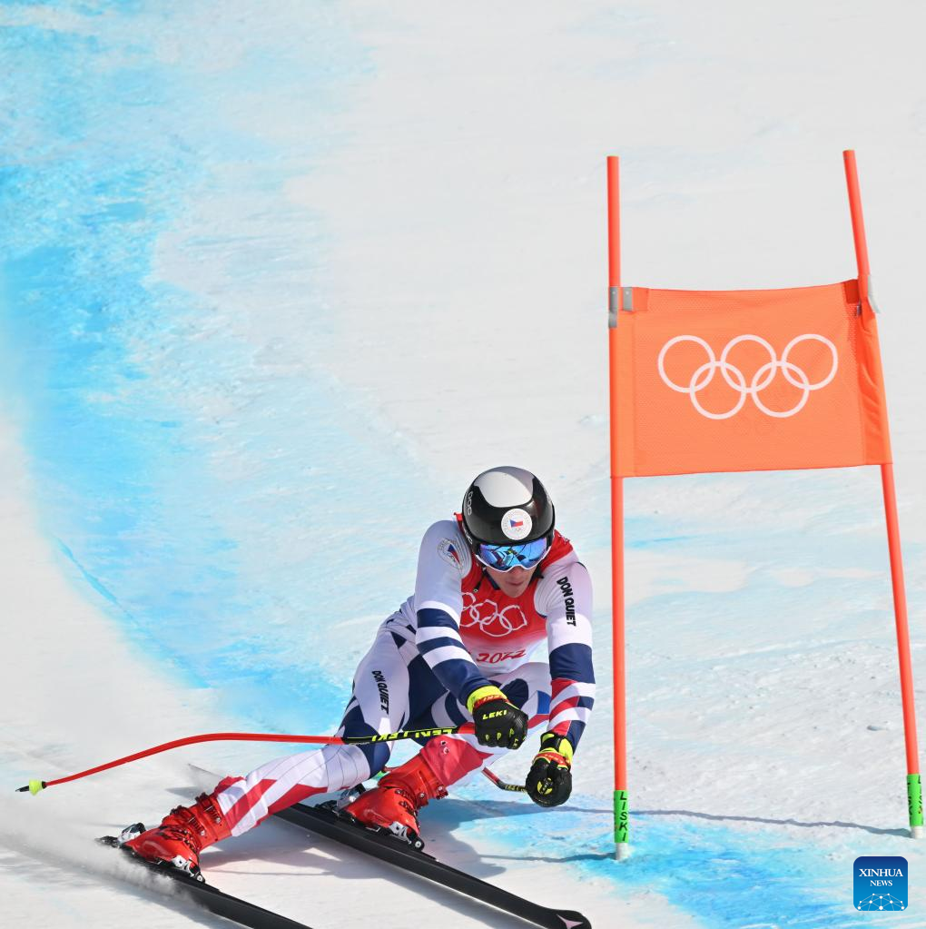 Jan Zabystran of Czech Republic competes during alpine skiing men's alpine combined at the National Alpine Skiing Centre in Yanqing District, Beijing, capital of China, Feb. 10, 2022. (Xinhua/Chen Yichen)