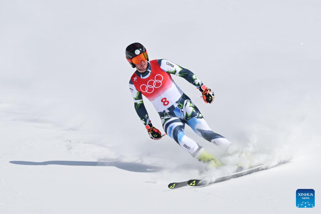 Nejc Naralocnik of Slovenia competes during alpine skiing men's alpine combined at the National Alpine Skiing Centre in Yanqing District, Beijing, capital of China, Feb. 10, 2022. (Xinhua/Chen Yichen)