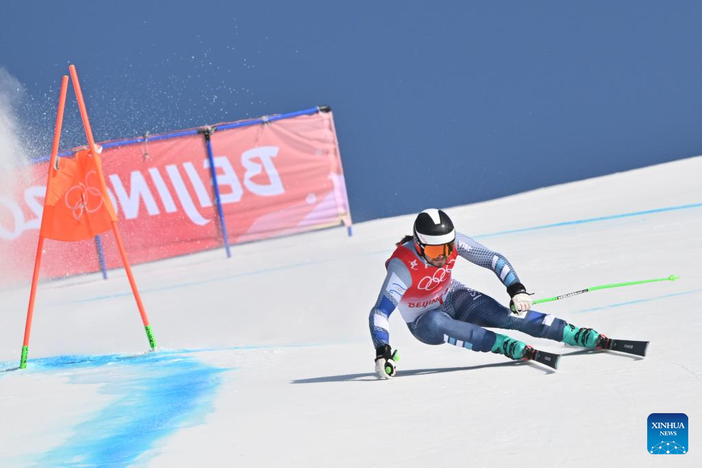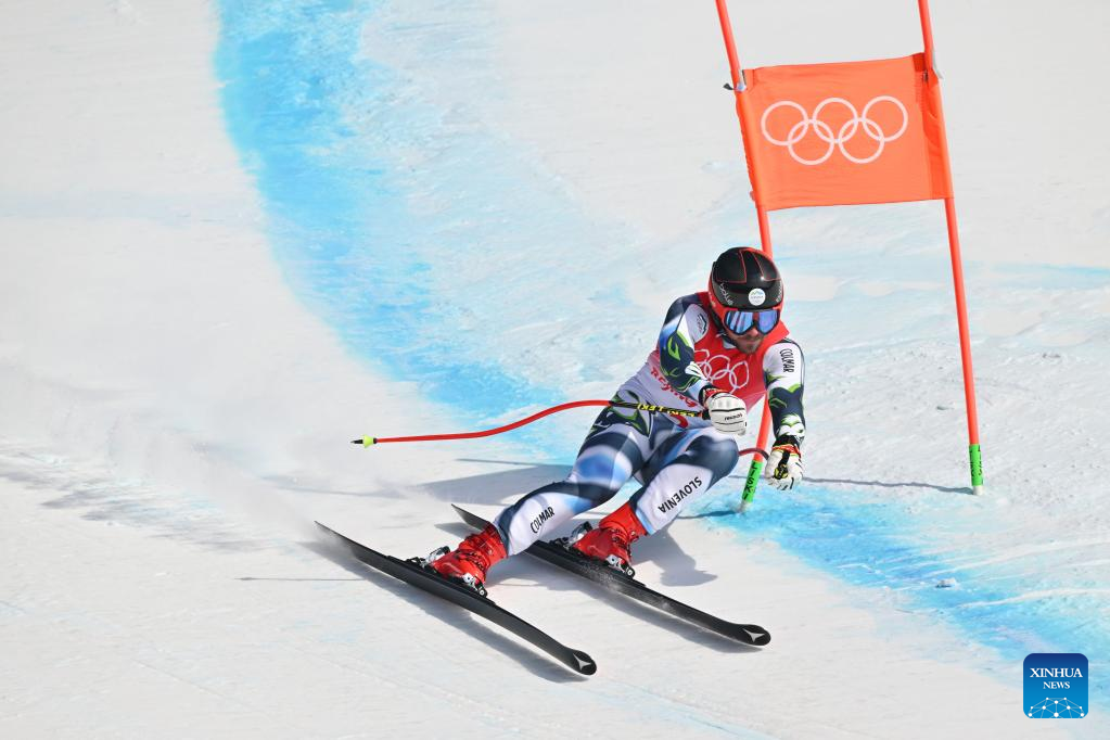 Miha Hrobat of Slovenia competes during alpine skiing men's alpine combined at the National Alpine Skiing Centre in Yanqing District, Beijing, capital of China, Feb. 10, 2022. (Xinhua/Chen Yichen)