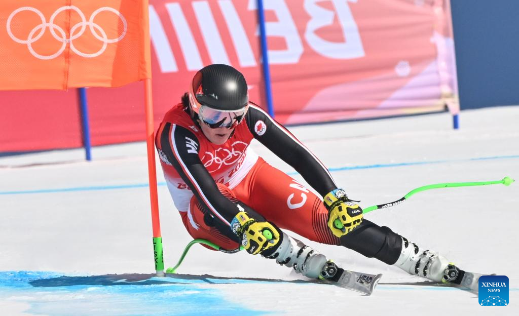 Broderick Thompson of Canada competes during alpine skiing men's alpine combined at the National Alpine Skiing Centre in Yanqing District, Beijing, capital of China, Feb. 10, 2022. (Xinhua/Chen Yichen)