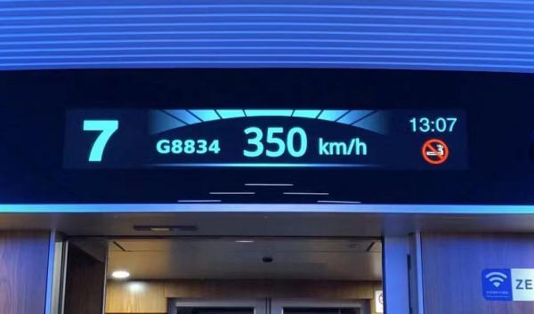 Photo shows the interior of an Olympic version of the Fuxing intelligent train.(Photo/gzstv.com)