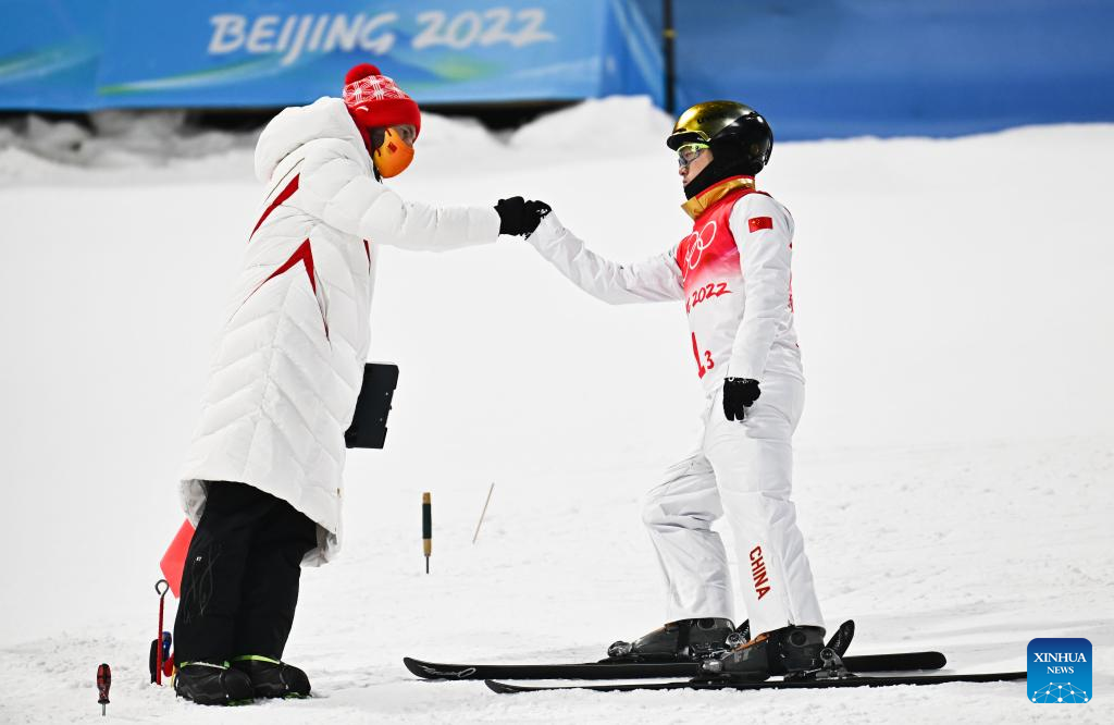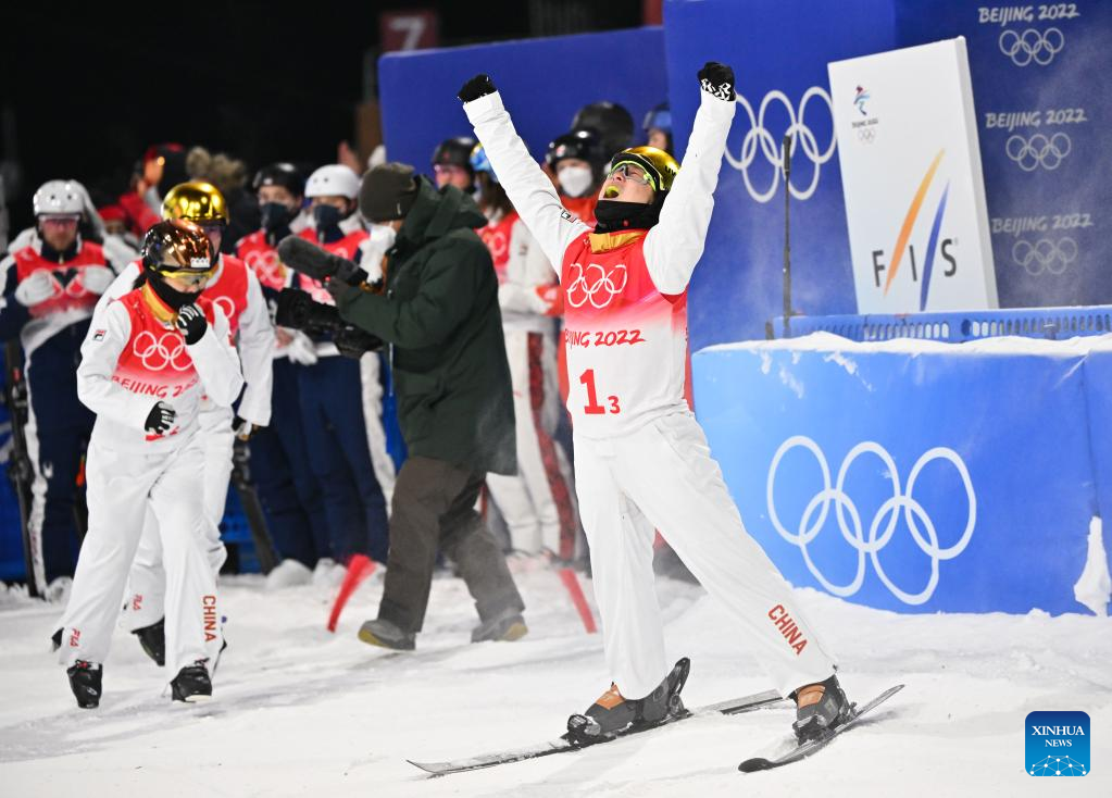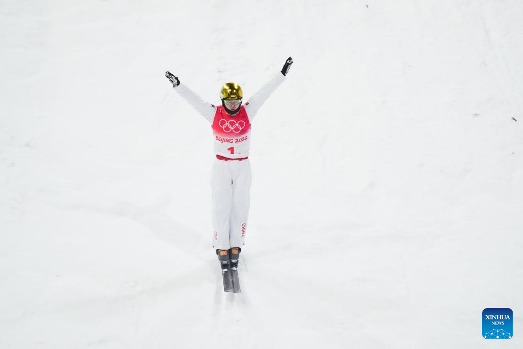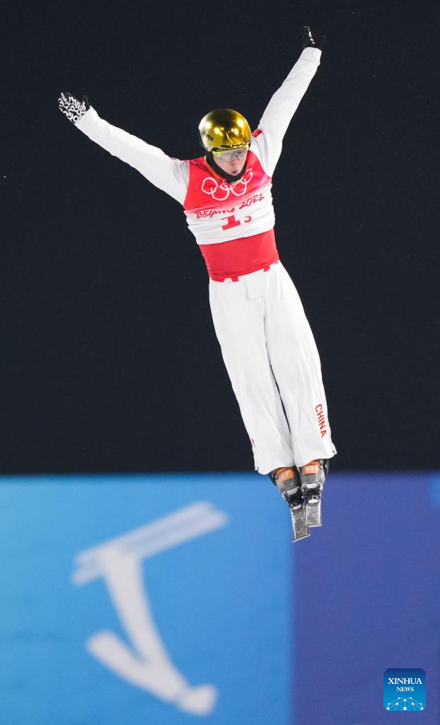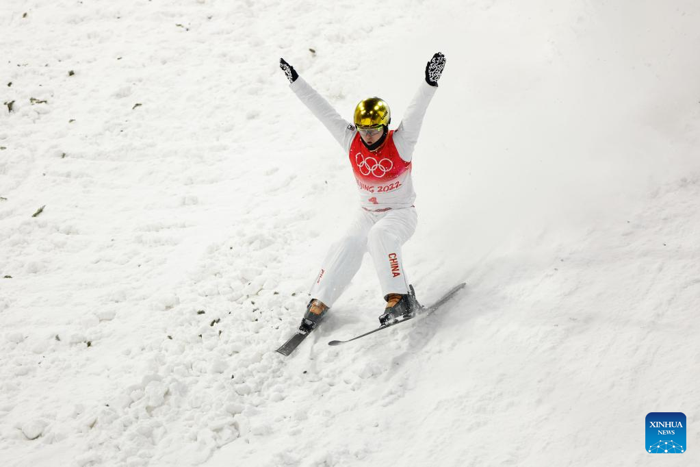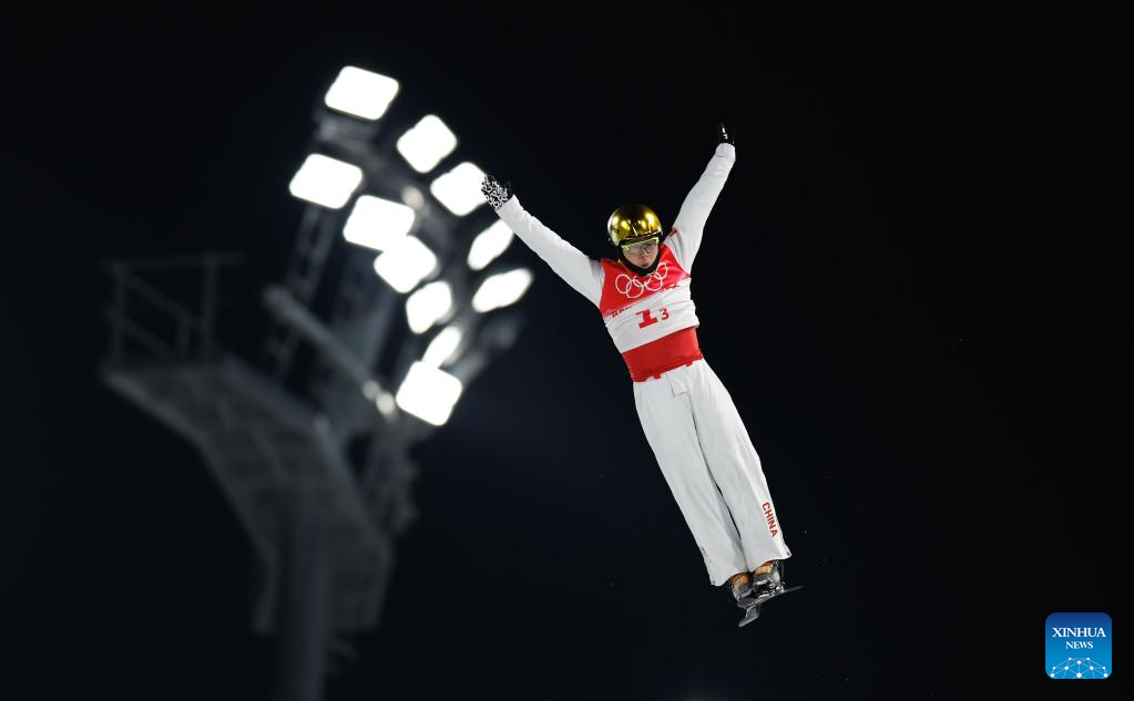 Qi Guangpu of China competes during the freestyle skiing mixed team aerials final at Genting Snow Park in Zhangjiakou, north China's Hebei Province, Feb. 10, 2022. (Xinhua/Wu Zhuang)